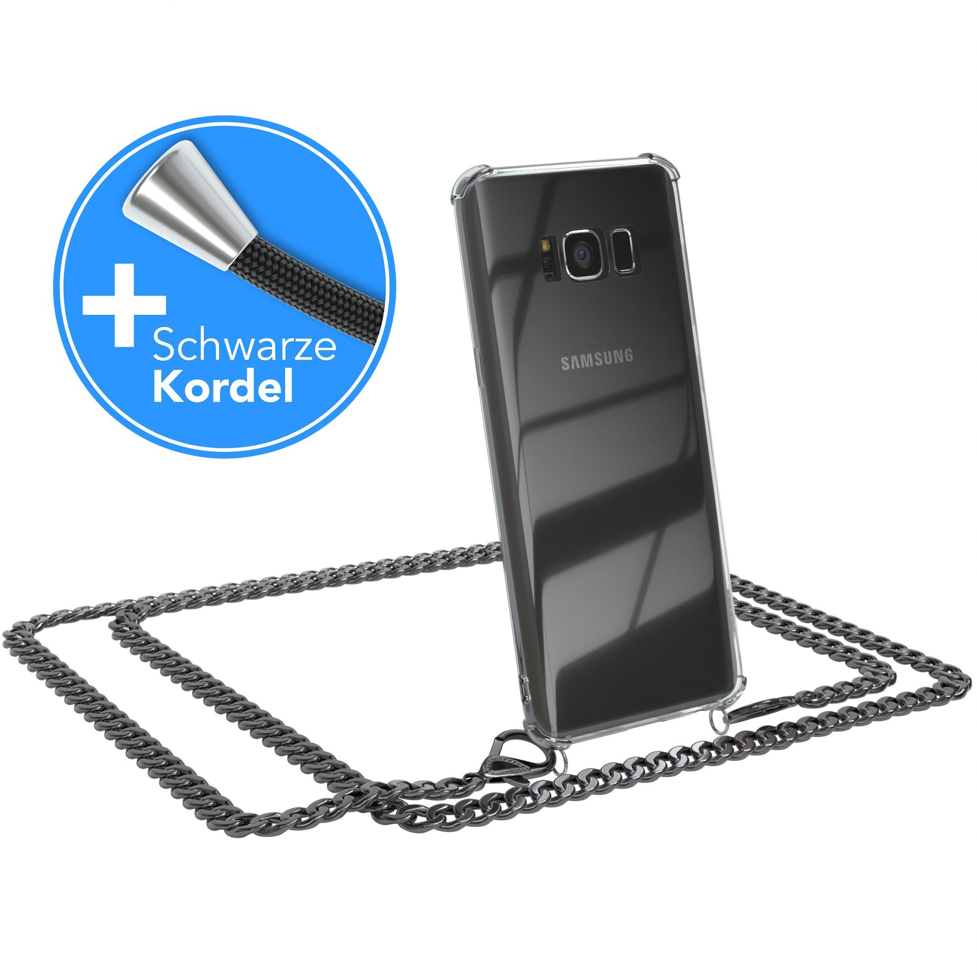 Lieferumfang | 1x Silikon Hülle + gewählte Metallkette + Stoffkordel Schwarz, 1x Mikrofasertuch |