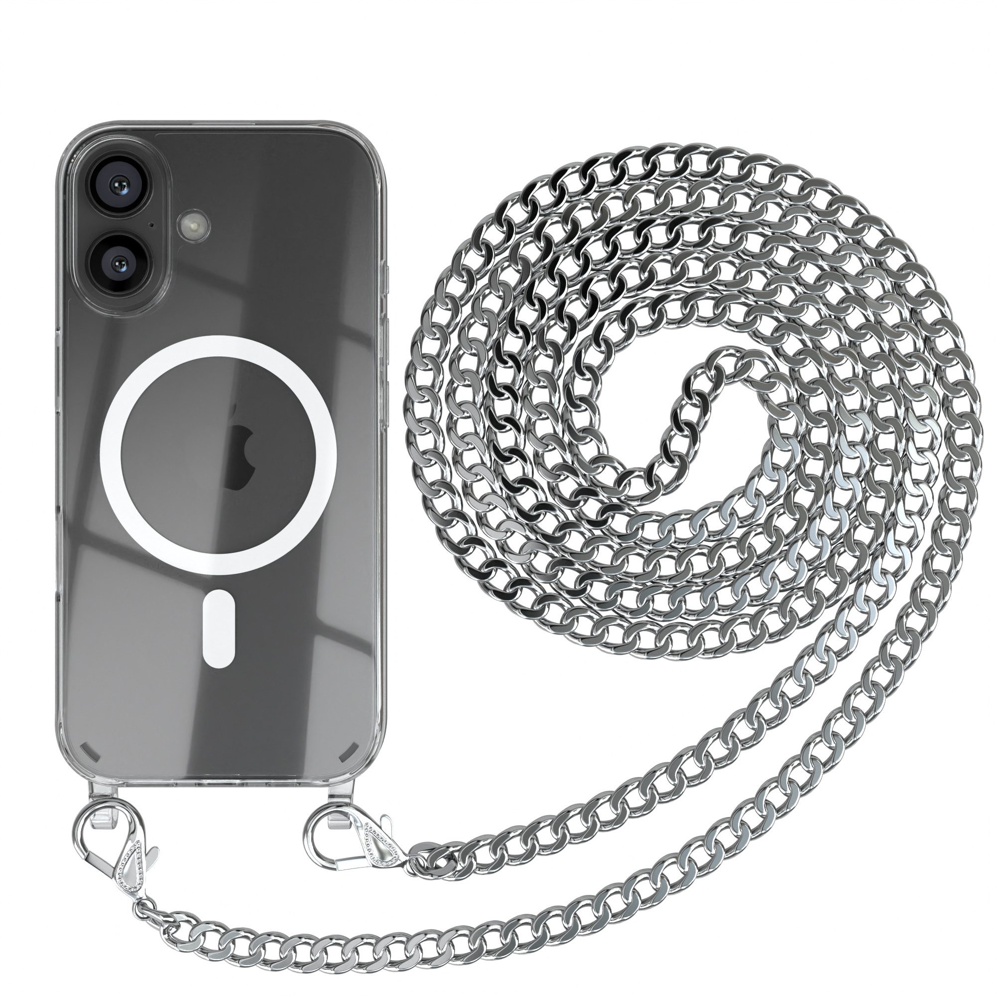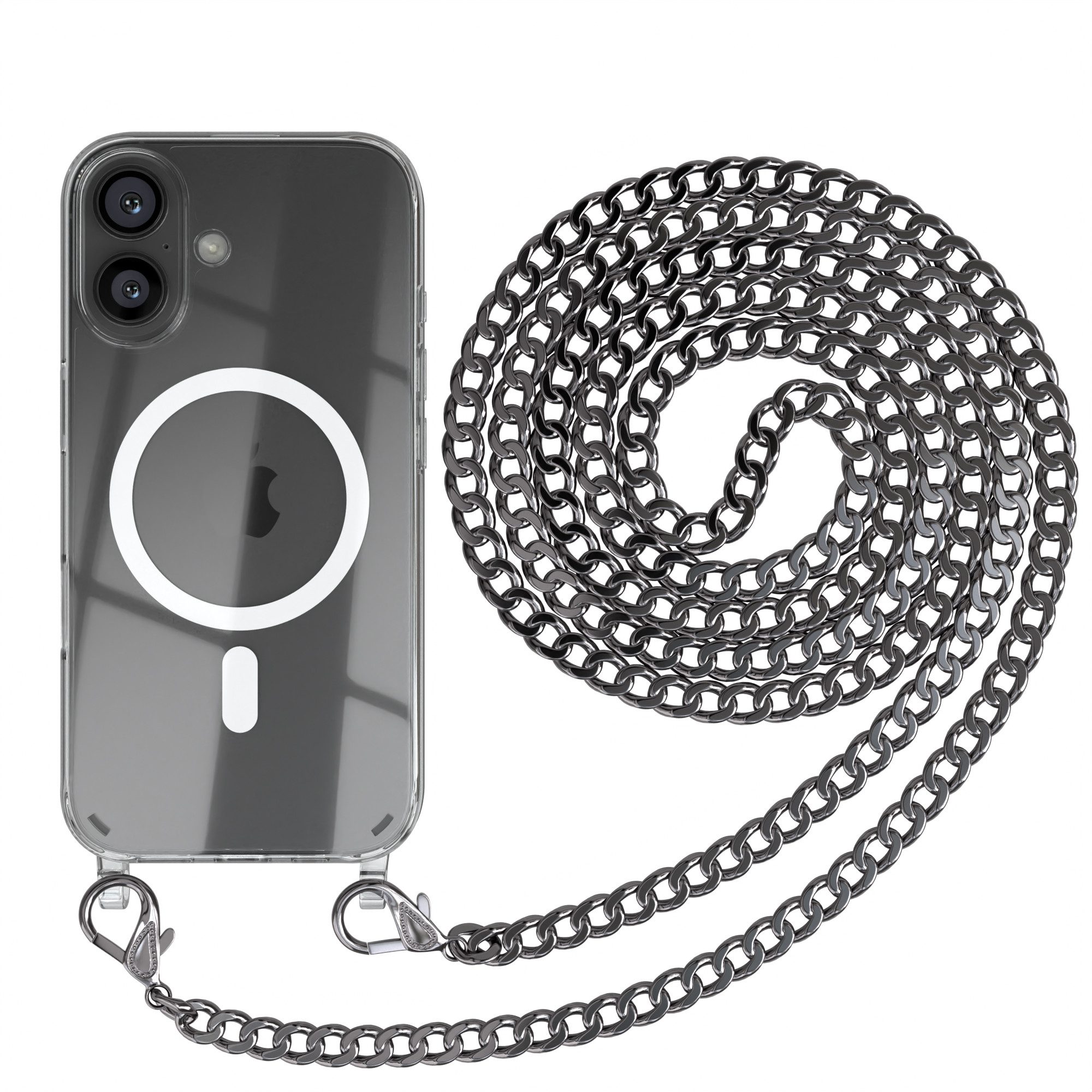 Lieferumfang | 1x MagSafe Silikon Hülle + gewählte Metallkette + Stoffkordel Schwarz, 1x Mikrofasertuch |