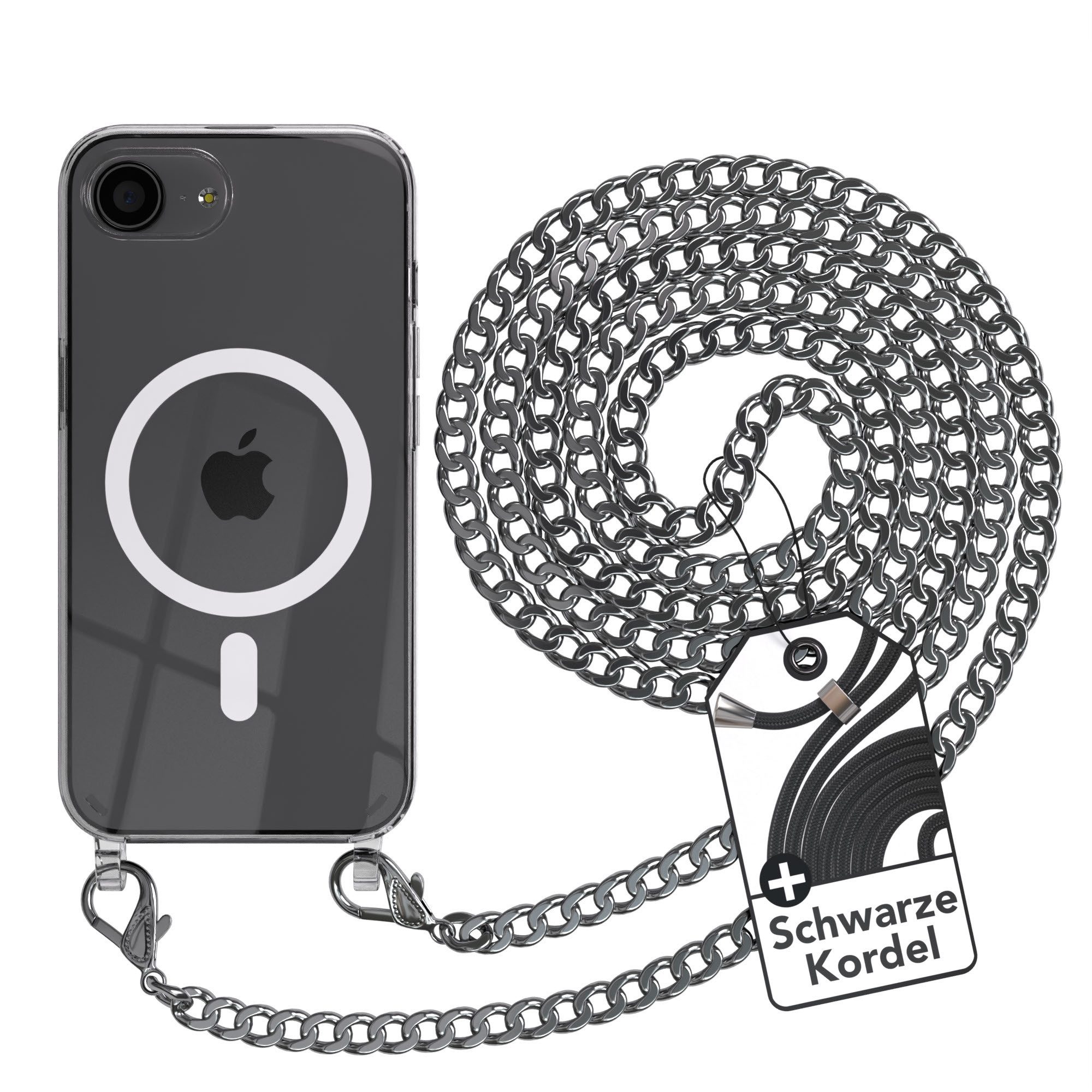 Lieferumfang | 1x MagSafe Silikon Hülle + gewählte Metallkette + Stoffkordel Schwarz, 1x Mikrofasertuch |