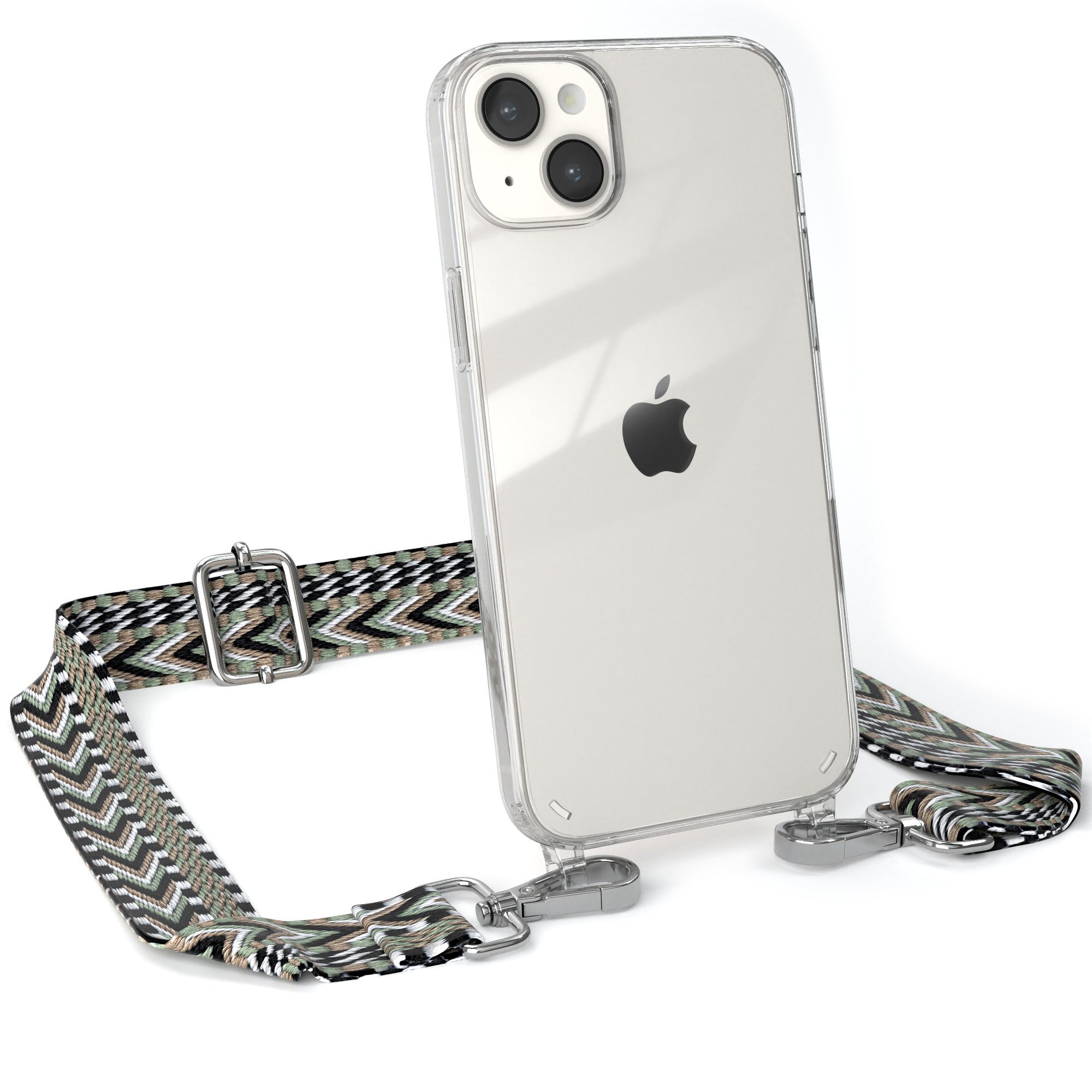 Lieferumfang | 1x Handyhülle Transparent mit Boho Taschenband + Karabiner, 1x Mikrofasertuch |