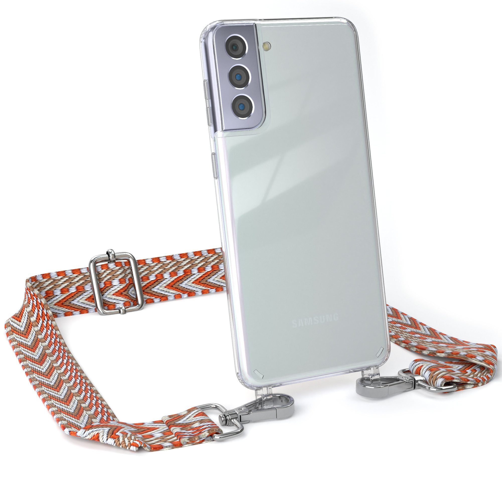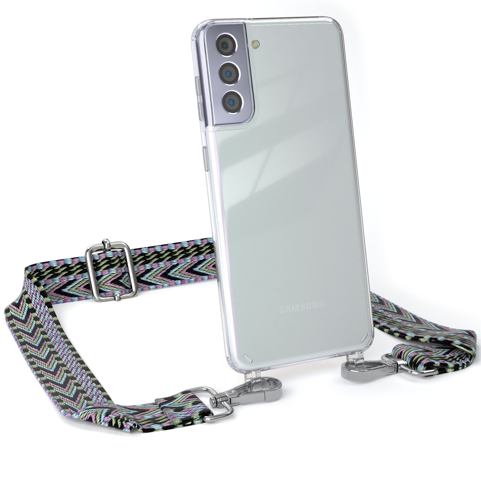 Lieferumfang | 1x Handyhülle Transparent mit Boho Taschenband + Karabiner, 1x Mikrofasertuch |