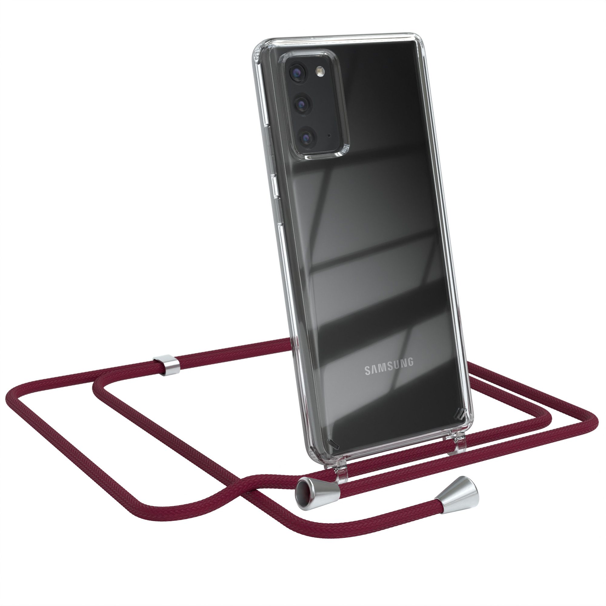 Besondere Merkmale | Silikonhülle durchsichtig mit Umhängeband Handytasche Bordeaux Rot |
