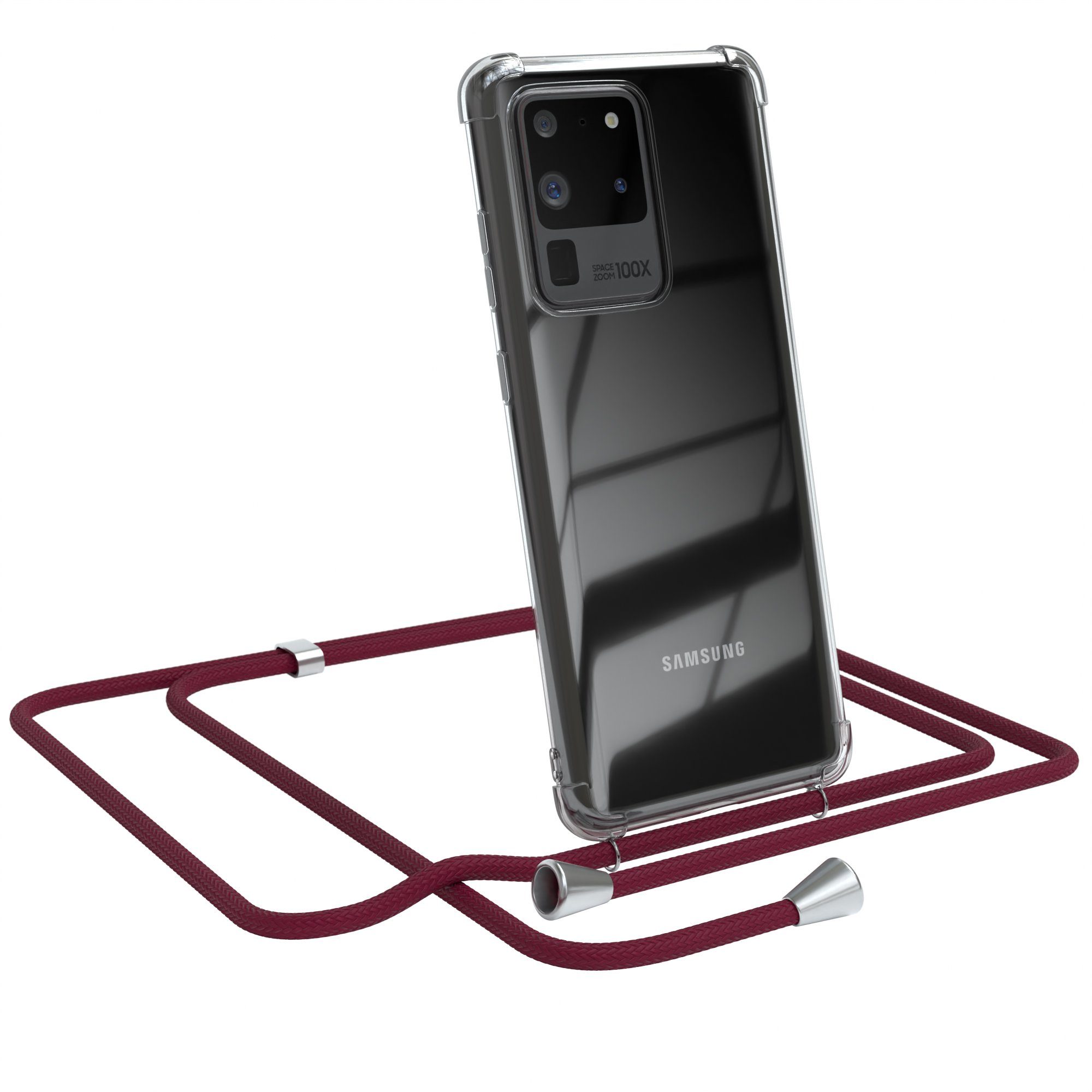 Besondere Merkmale | Silikonhülle durchsichtig mit Umhängeband Handytasche Bordeaux Rot |