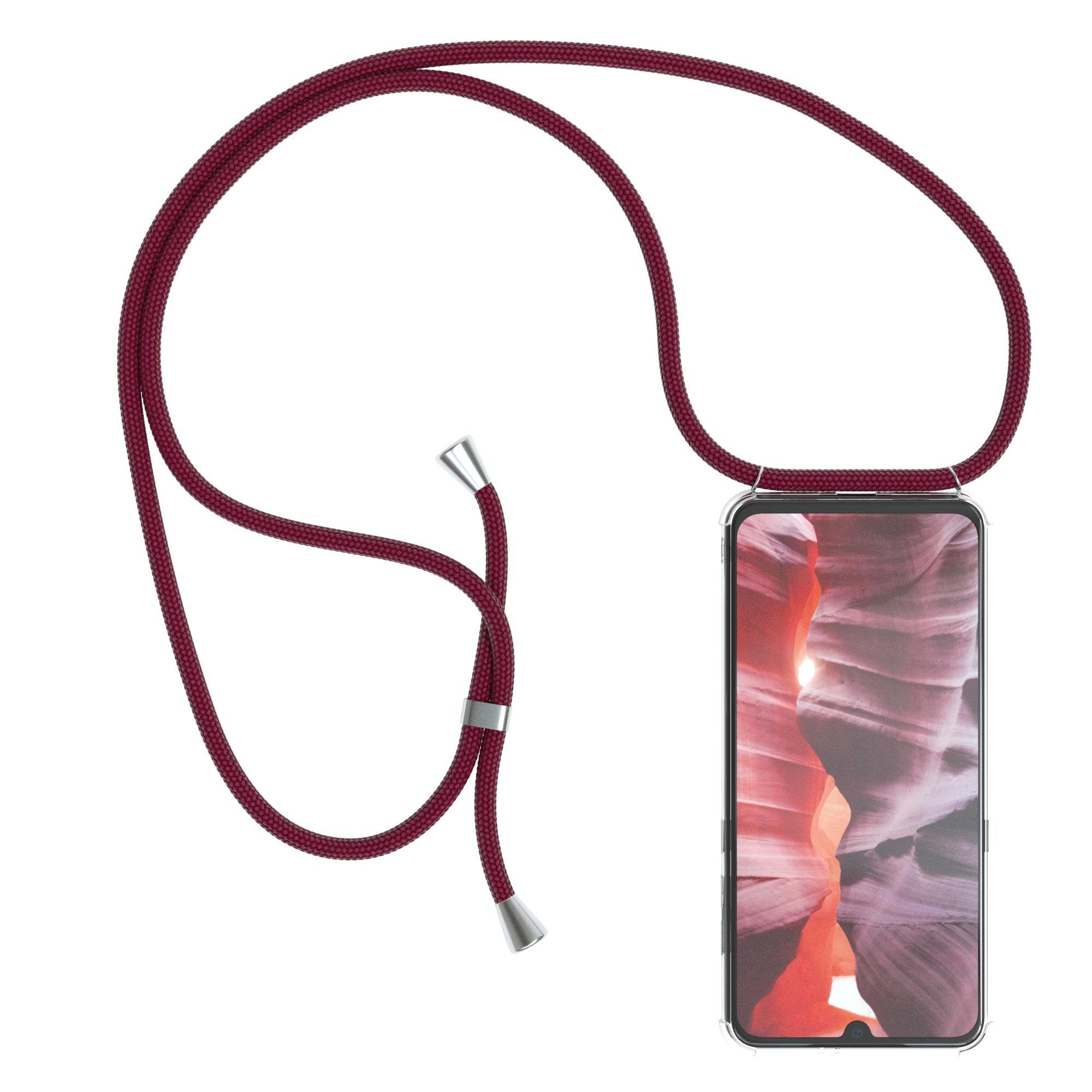 Besondere Merkmale | Silikonhülle durchsichtig mit Umhängeband Handytasche Bordeaux Rot |