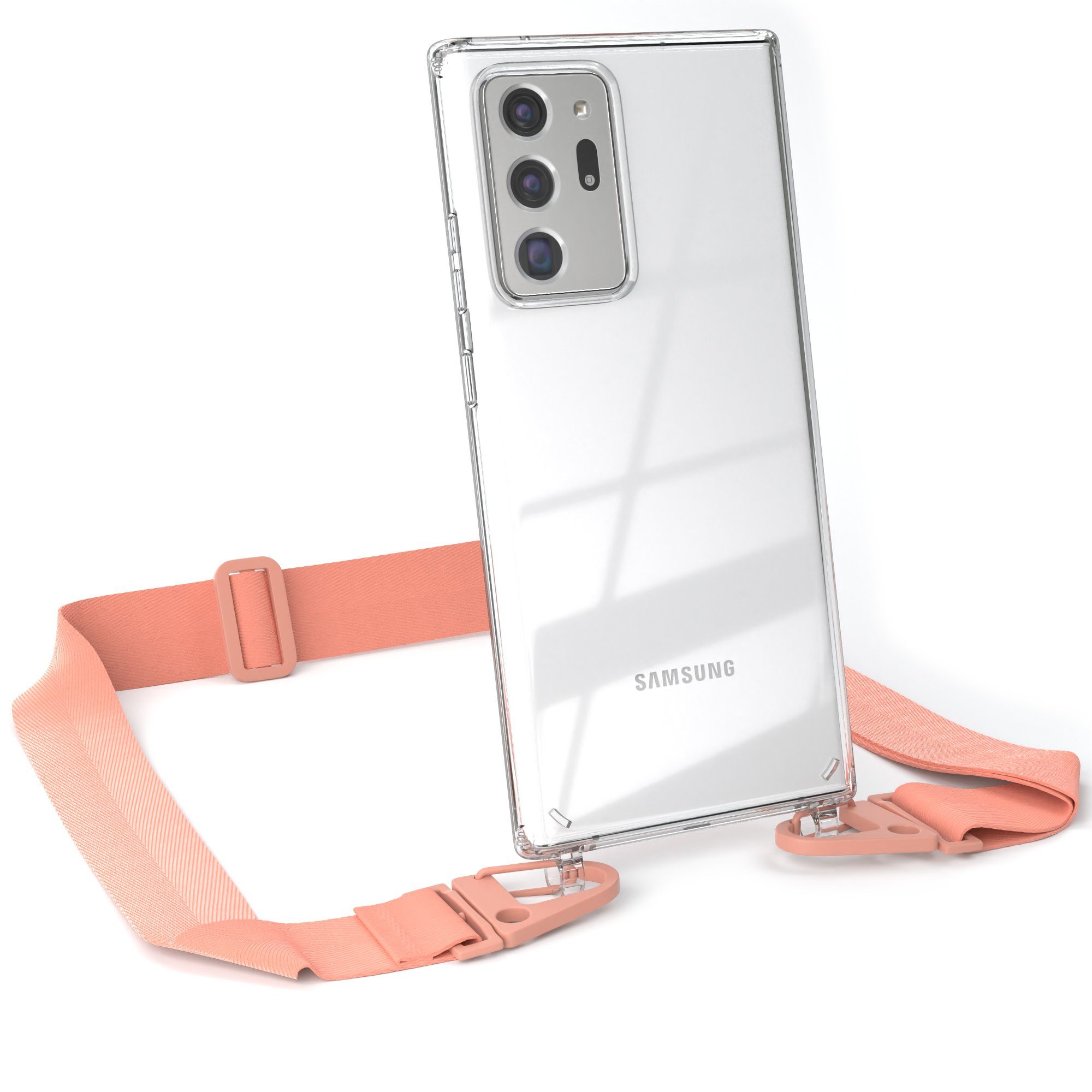 Lieferumfang | 1x Handyhülle Transparent mit Breitband + Karabiner, 1x Mikrofasertuch |