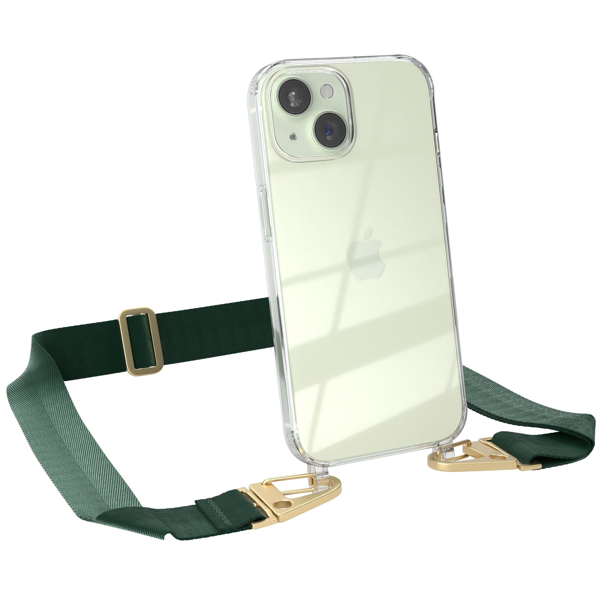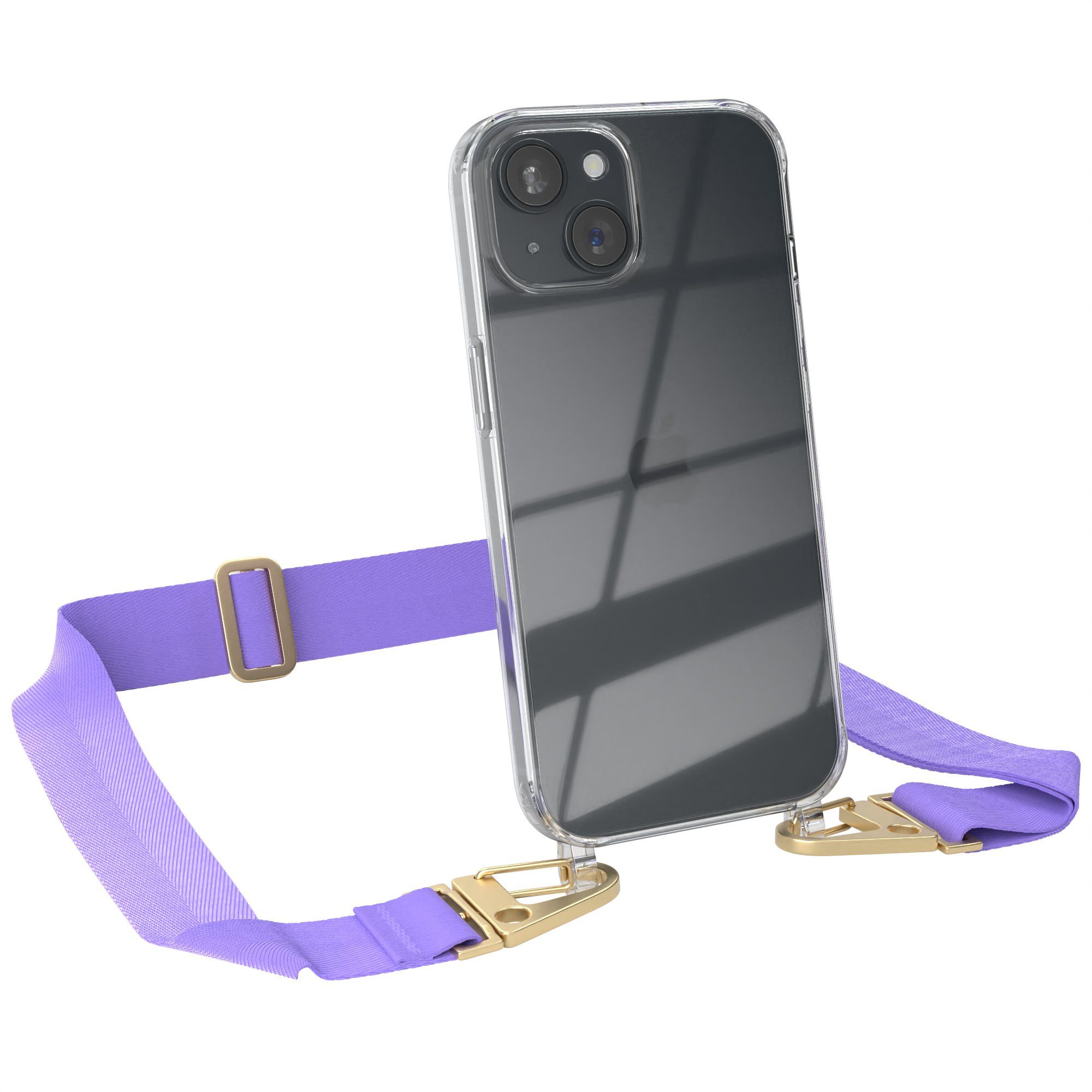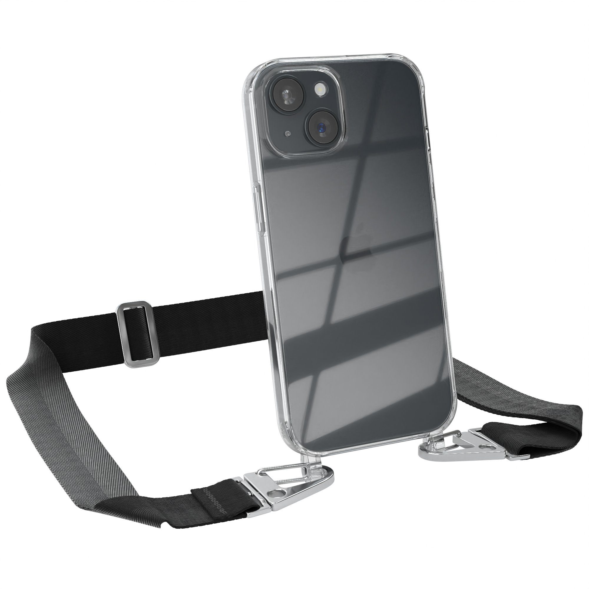 Lieferumfang | 1x Handyhülle Transparent mit Breitband + Karabiner, 1x Mikrofasertuch |