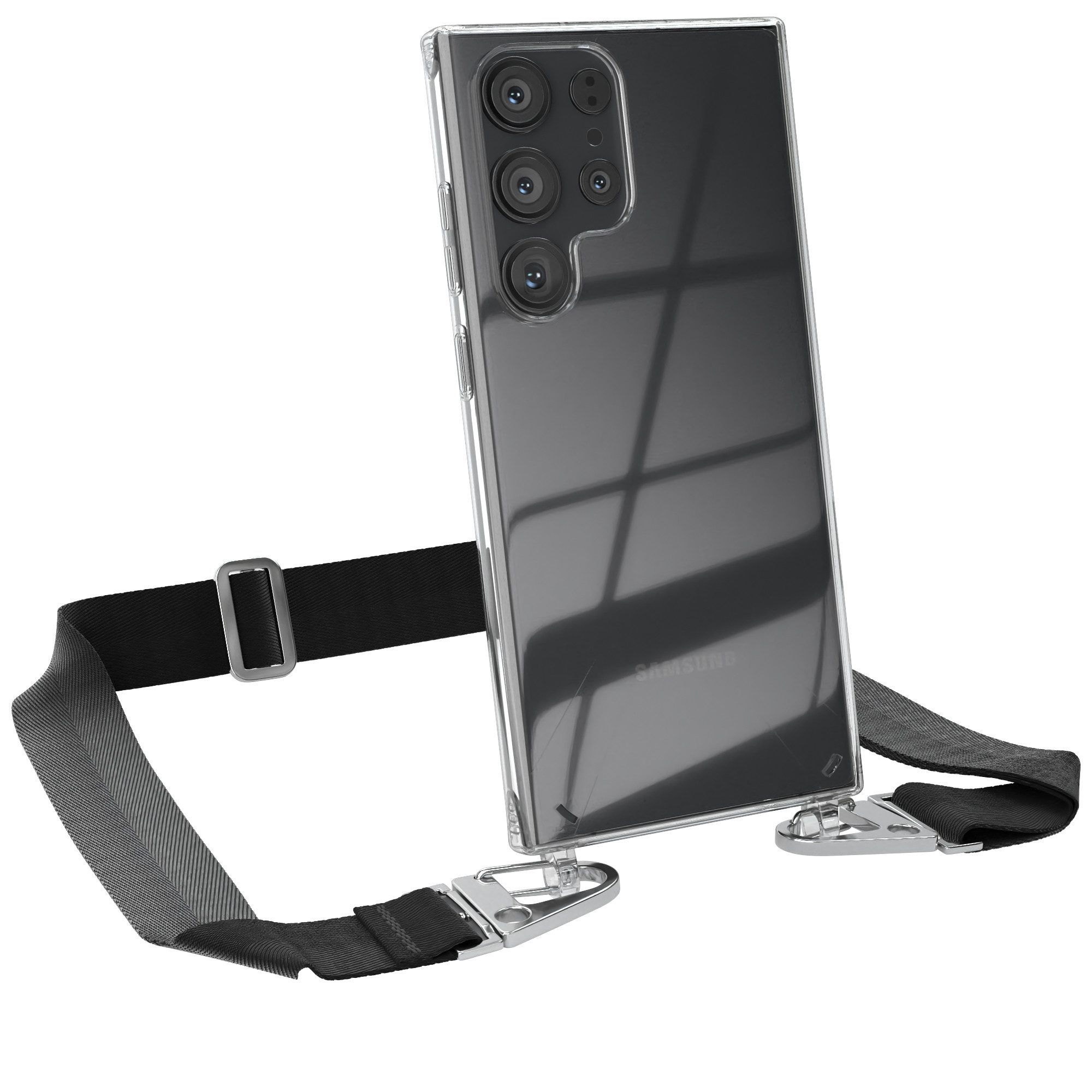 Lieferumfang | 1x Handyhülle Transparent mit Breitband + Karabiner, 1x Mikrofasertuch |