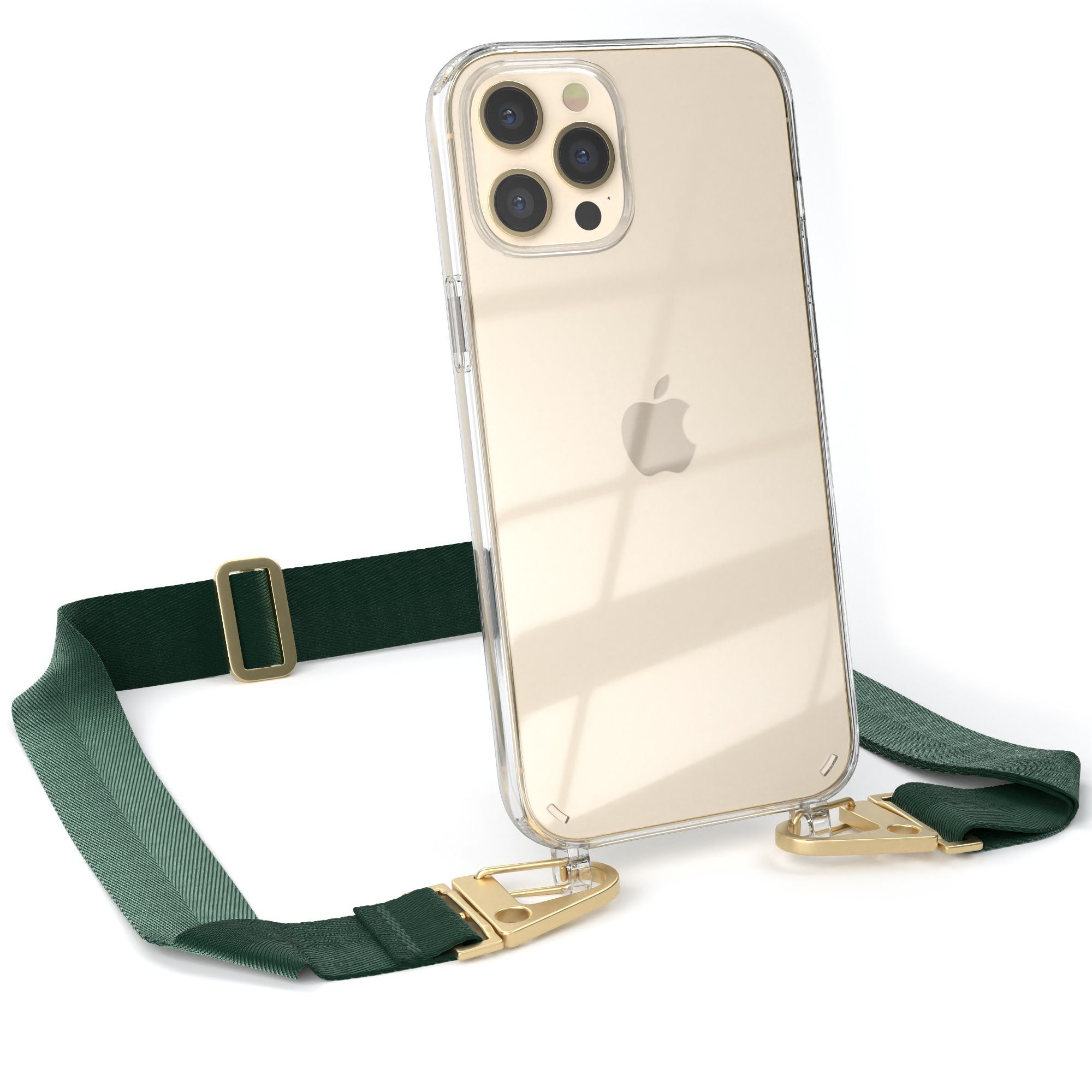 Lieferumfang | 1x Handyhülle Transparent mit Breitband + Karabiner, 1x Mikrofasertuch |