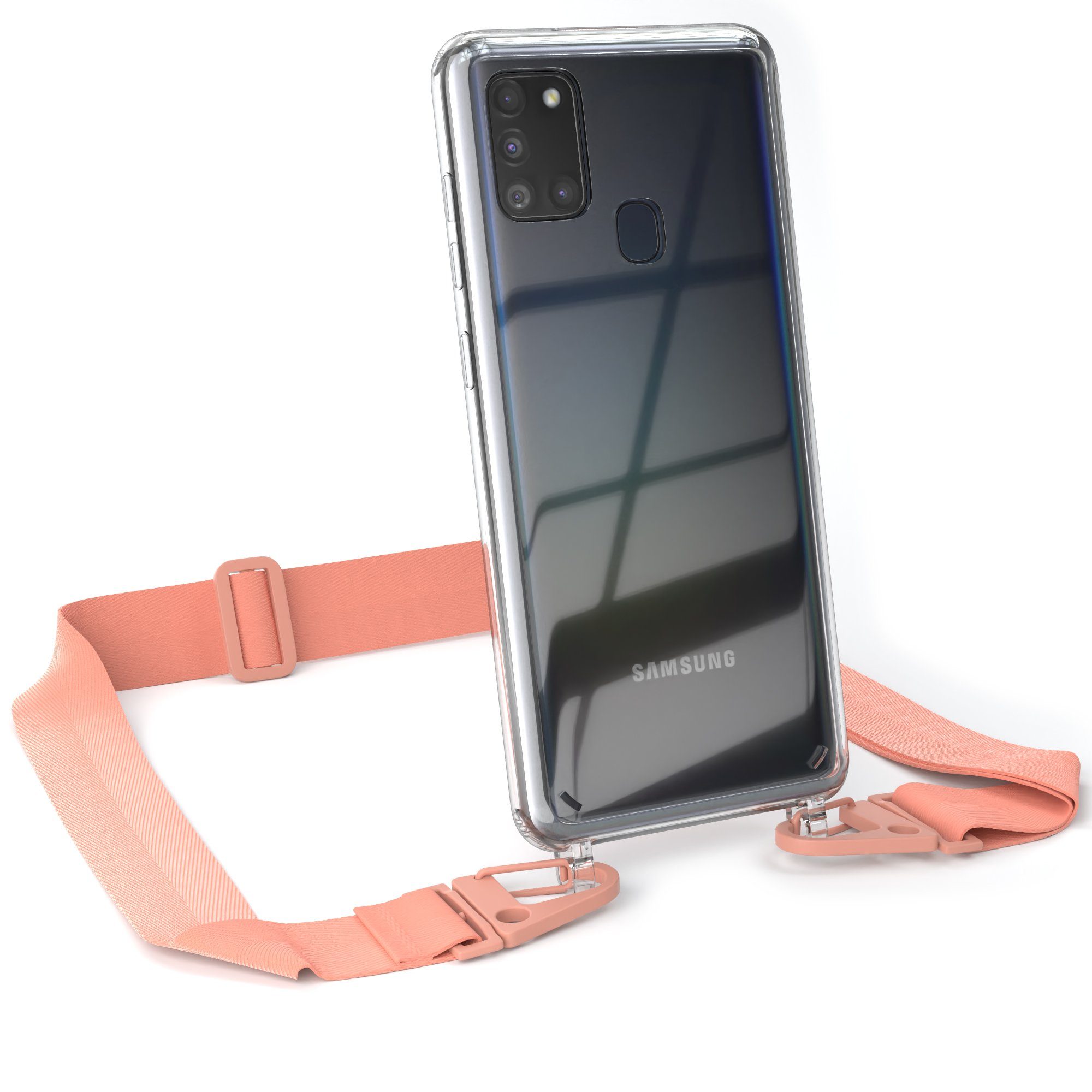 Lieferumfang | 1x Handyhülle Transparent mit Breitband + Karabiner, 1x Mikrofasertuch |