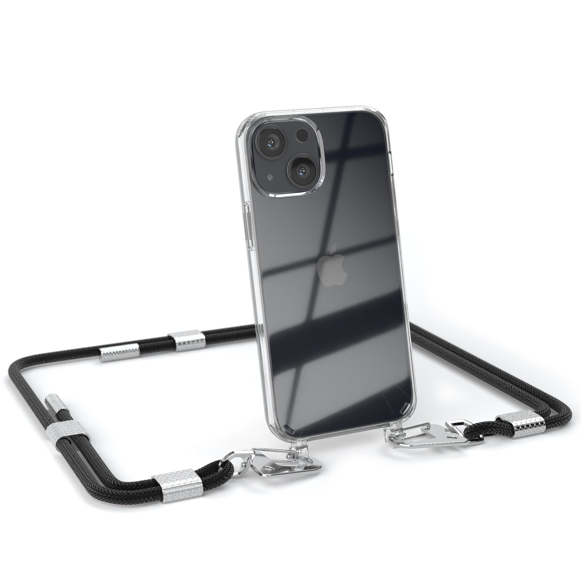 Lieferumfang | 1x Handyhülle Transparent mit Band + Karabiner, 1x Mikrofasertuch |