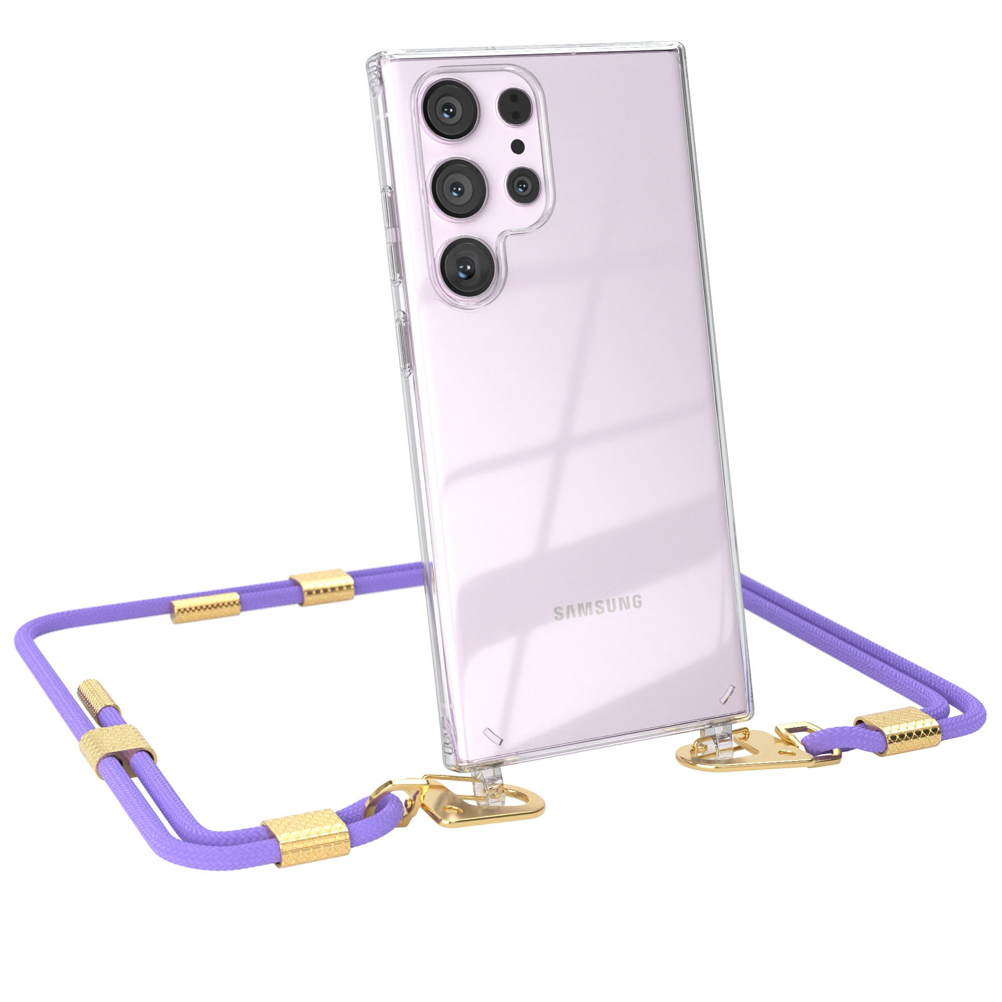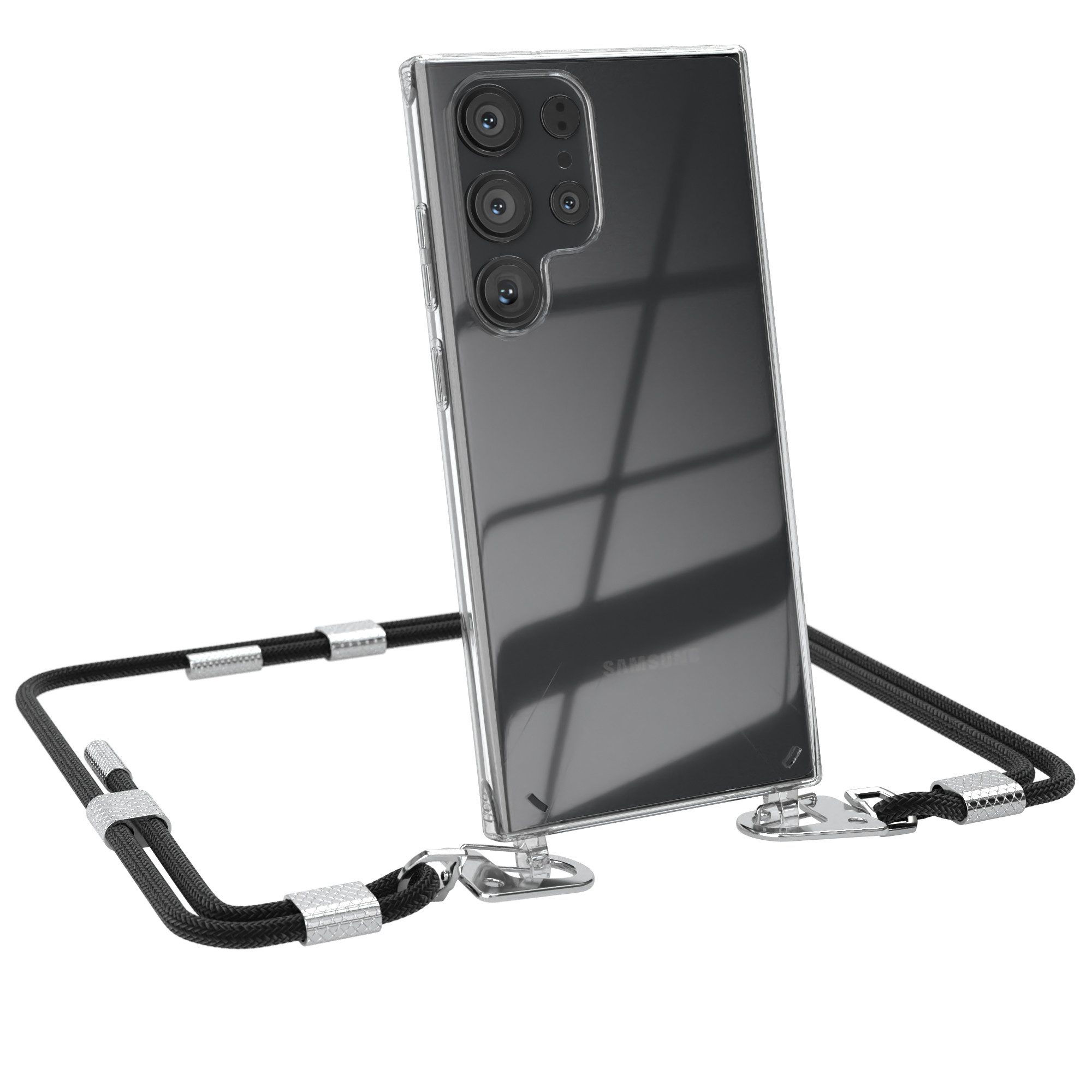 Lieferumfang | 1x Handyhülle Transparent mit Band + Karabiner, 1x Mikrofasertuch |