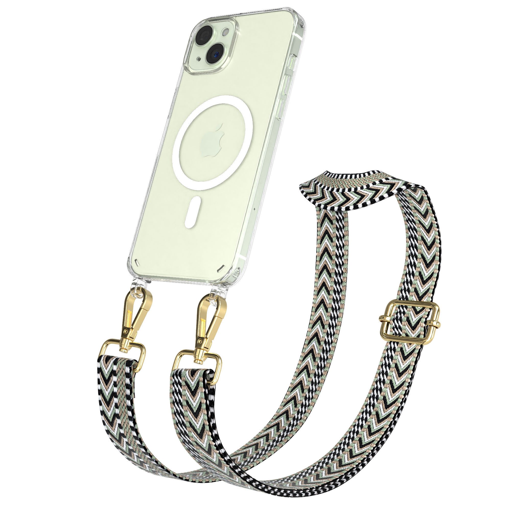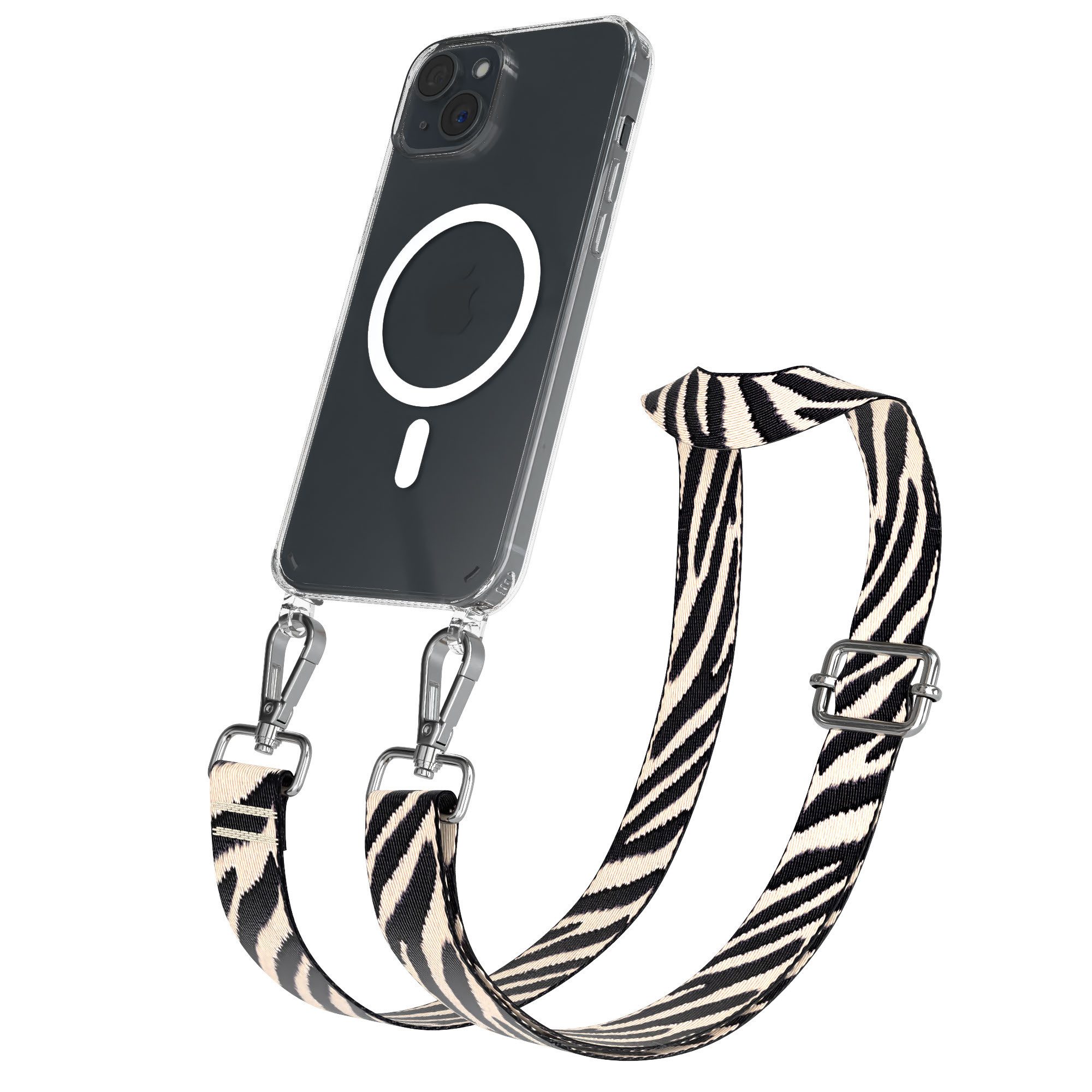 Besondere Merkmale | Festivaltasche für Handy Umhängeband Leo MagSafe Clear Case Schwarz |