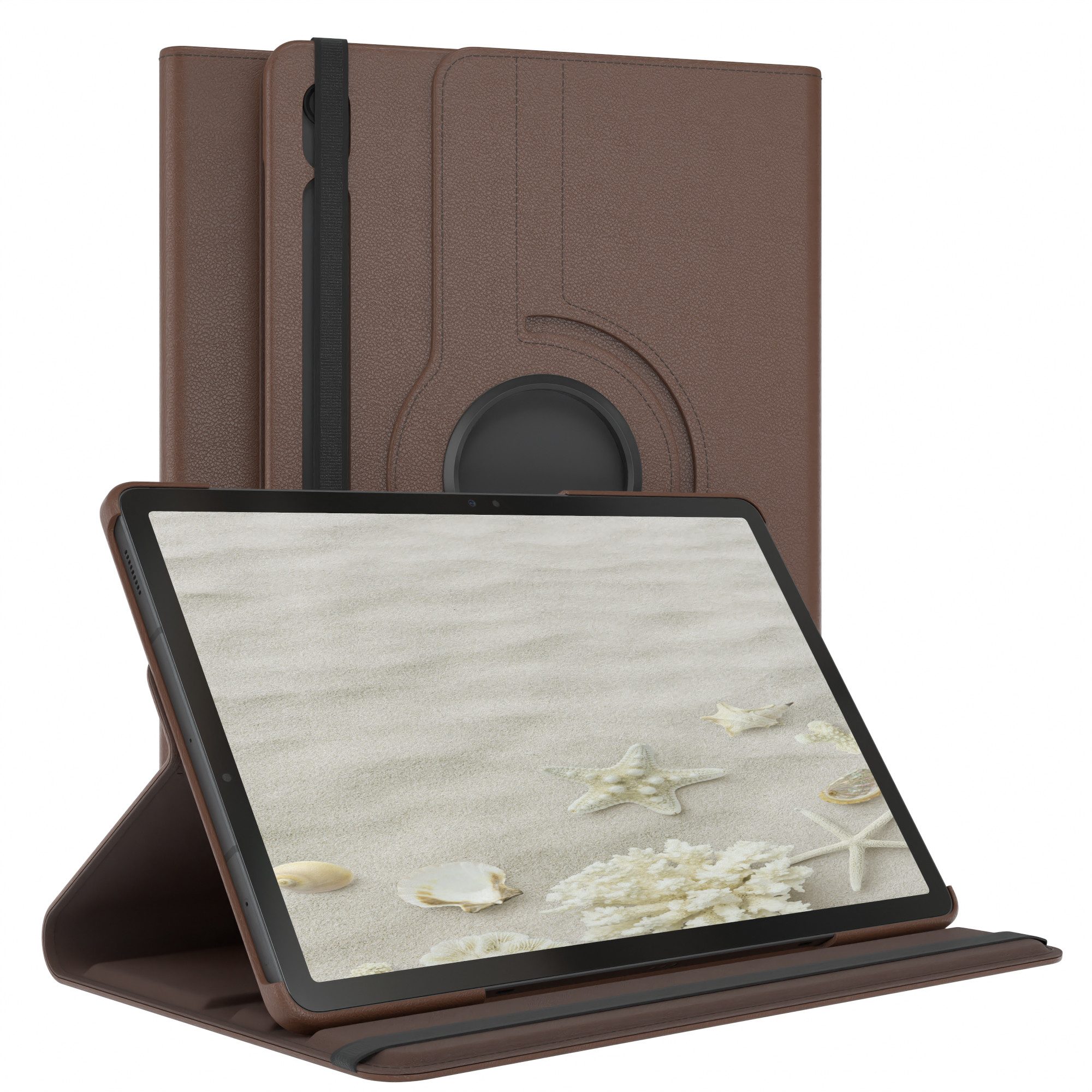 Ausstattung | Stoßschutz, Aussparungen für Knöpfe, Kameraaussparung, Magnetverschluss, Sleep & Wake Up Funktion, Mikrofaser Innenfutter, Standfunktion, Rotationsfunktion, Gummiband |