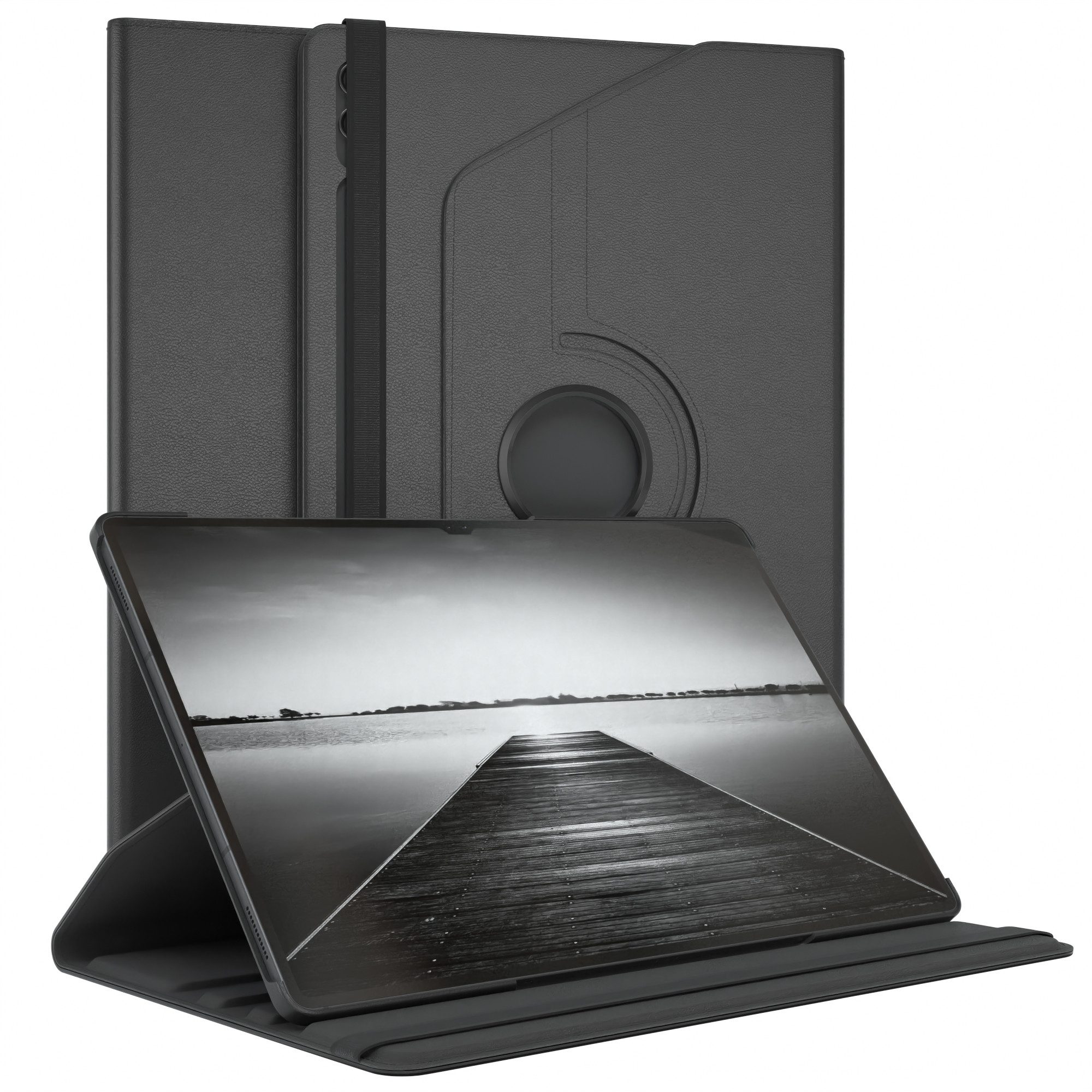 Ausstattung | Stoßschutz, Aussparungen für Knöpfe, Kameraaussparung, Magnetverschluss, Sleep & Wake Up Funktion, Mikrofaser Innenfutter, Standfunktion, Rotationsfunktion, Gummiband |
