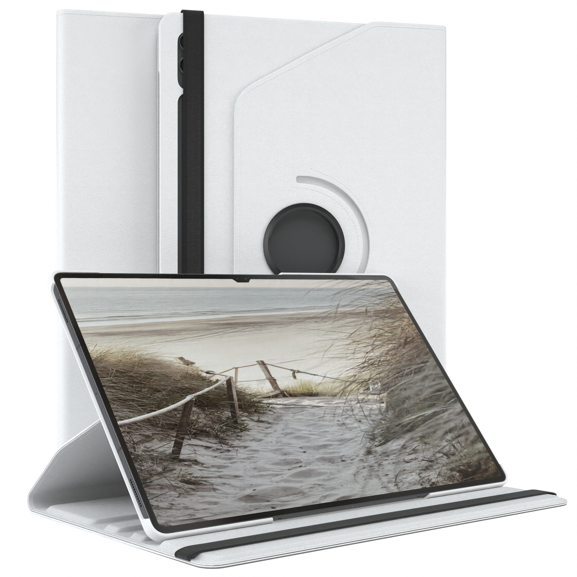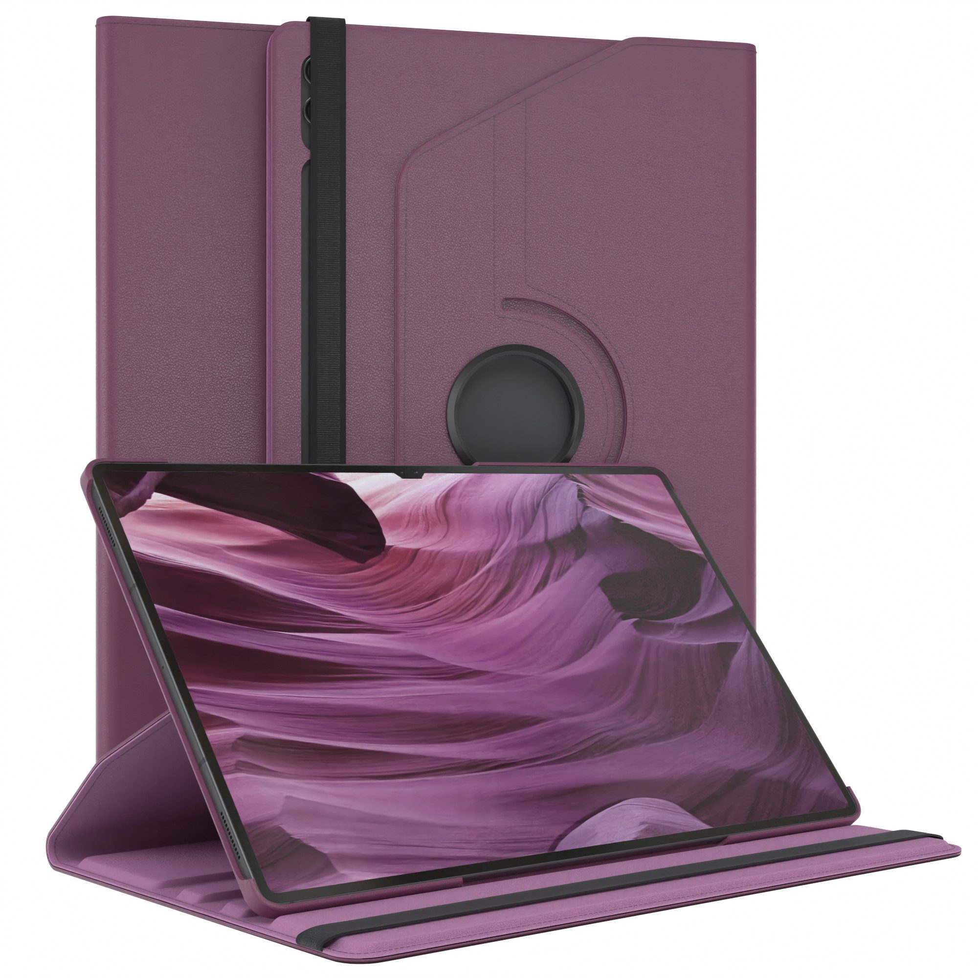 Ausstattung | Stoßschutz, Aussparungen für Knöpfe, Kameraaussparung, Magnetverschluss, Sleep & Wake Up Funktion, Mikrofaser Innenfutter, Standfunktion, Rotationsfunktion, Gummiband |