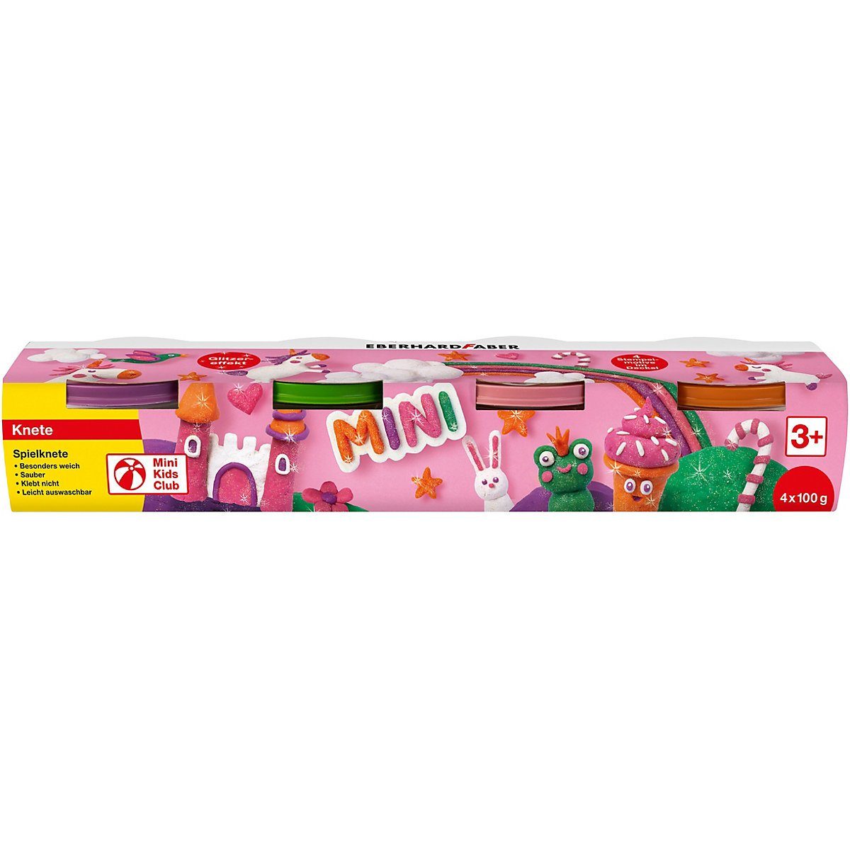 4er Spielknete Set mit Glitzereffekt in den Farben grün, rosa, lila und orange