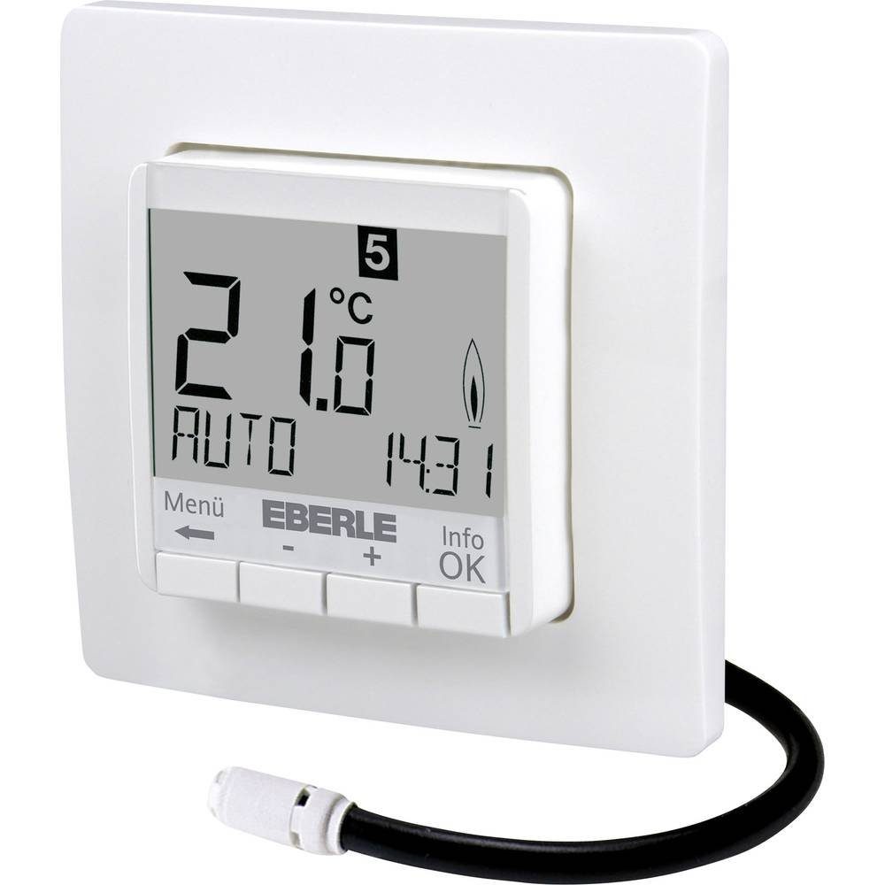 Eigenschaften | Ausführung (allgemein): Heizen, Bodentemperatur · Betriebsart (mechanisch/elektronisch): elektronisch · Betriebsspannung: 230 V · Display: Ja · Fernfühler: Ja · Gewicht: 280 g · Herstellerfarbe: Reinweiß · Kontaktart (LOV): 1 Schließer · Montageart: Unterputz · Passend für (Thermostate): Elektrische Fußbodentemperierung · Produktabmessung, Breite: 81 mm · Produktabmessung, Höhe: 25 mm · Produktabmessung, Длина: 42 mm · RAL-Farbcode (ähnlich): 9010 · Schutzart: IP30 · Stromversorgung (LOV): netzbetrieben · Temperatureinstellung, Oberer Wert: 40 °C · Впередe technische Daten: Ausgang: Relais Schließer, nicht potentialfrei |