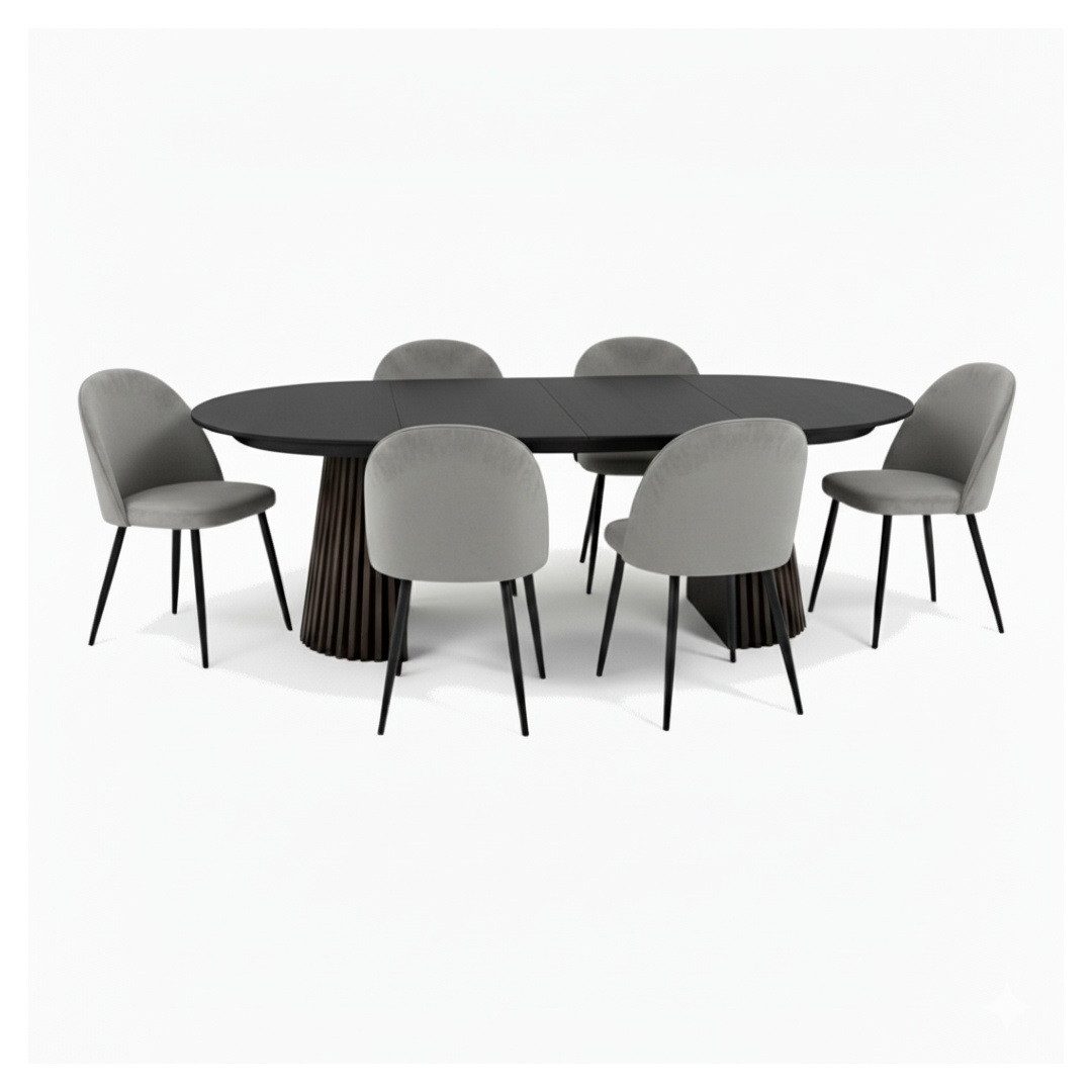 Essgruppe Tokyo Essgruppe Esstisch schwarz, 6 Stühle aus gra