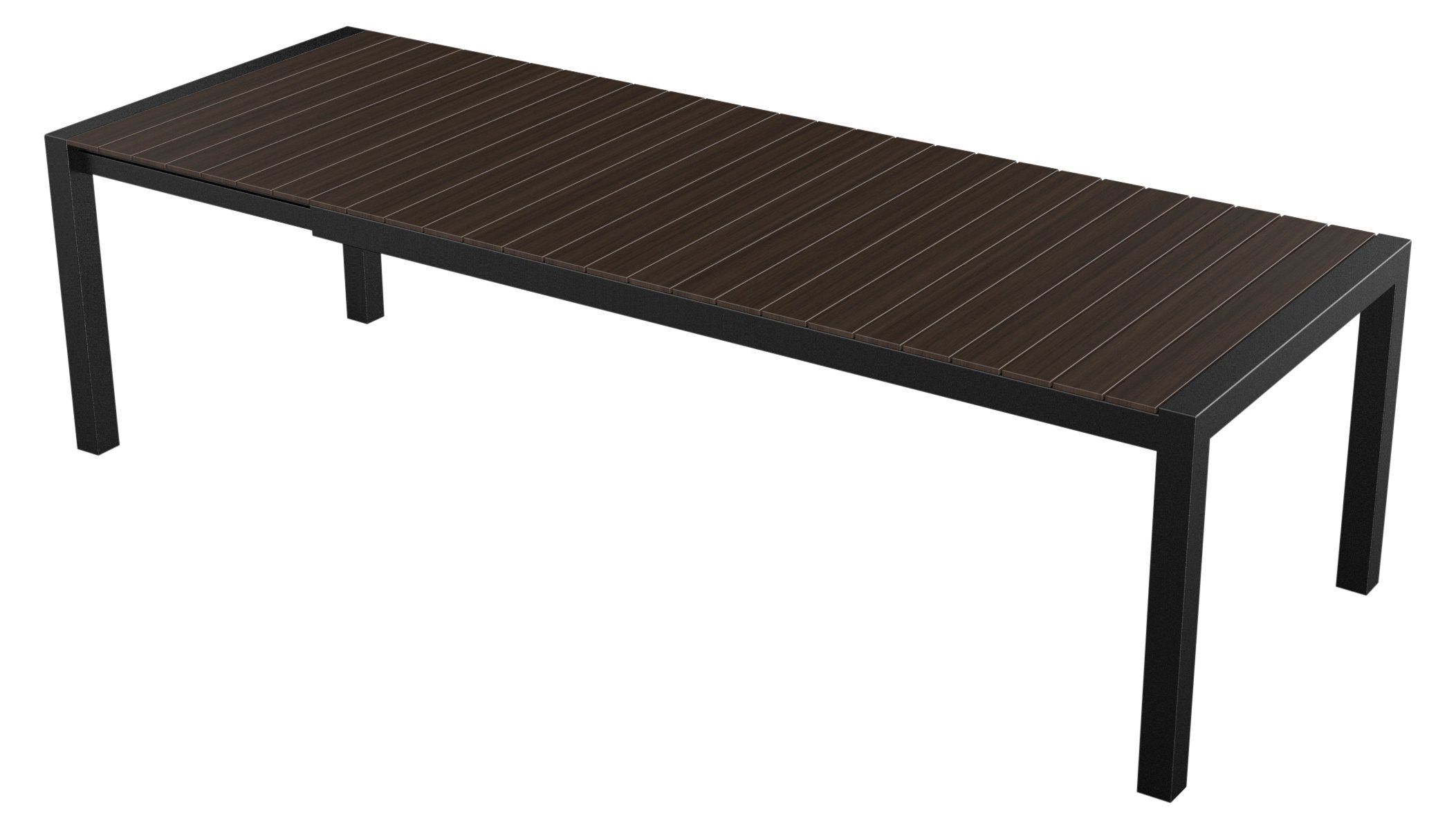 Joan Gartentisch 205-275 x 100 cm, mit Verlängerung inkl. 1 Platte, Schwarz und Teakholzdekor ist ein Gartentisch in der Farbe Schwarz, der sowohl Stil als auch Funktionalität in Ihr Zuhause bringt. 1 Teller, Schwarz- und Teakholzdekor. Dieses Produkt wurde mit viel Liebe zum Detail hergestellt, was sowohl Ästhetik als auch hohe Haltbarkeit gewährleistet. Bei der Gestaltung wurde sowohl auf Funktionalität als auch auf Stil geachtet, was es zur perfekten Wahl für jeden Raum in Ihrem Zuhause macht. Die verwendeten Materialien sind von hoher Qualität, was dem Produkt eine lange Lebensdauer verleiht und dafür sorgt, dass es dem täglichen Gebrauch standhält. Ob zur Aufbewahrung oder als dekorative Ergänzung, dieses Produkt wertet Ihre Einrichtung auf und bringt zusätzlichen Komfort und Eleganz in Ihr Zuhause.