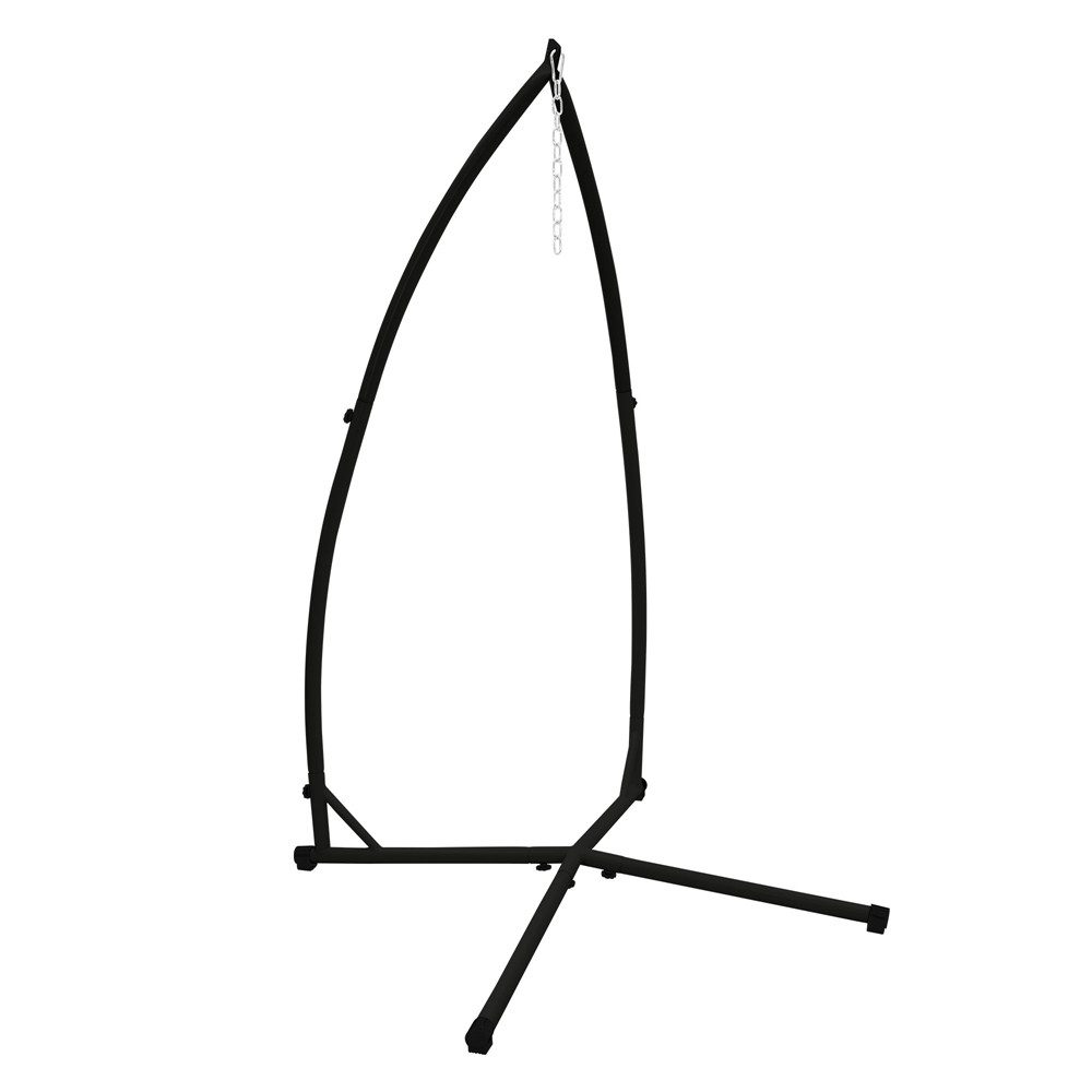 Mit dem leicht gewölbten Bogengestell, wird der ECD Germany Hängestuhlständer zum echten Blickfang. Das Gestell verfügt über zwei stabile Kreuzstandfüße und ist aus wetterfestem, pulverbeschichtetem Metall hergestellt, so dass die Standfestigkeit und Sicherheit garantiert ist.