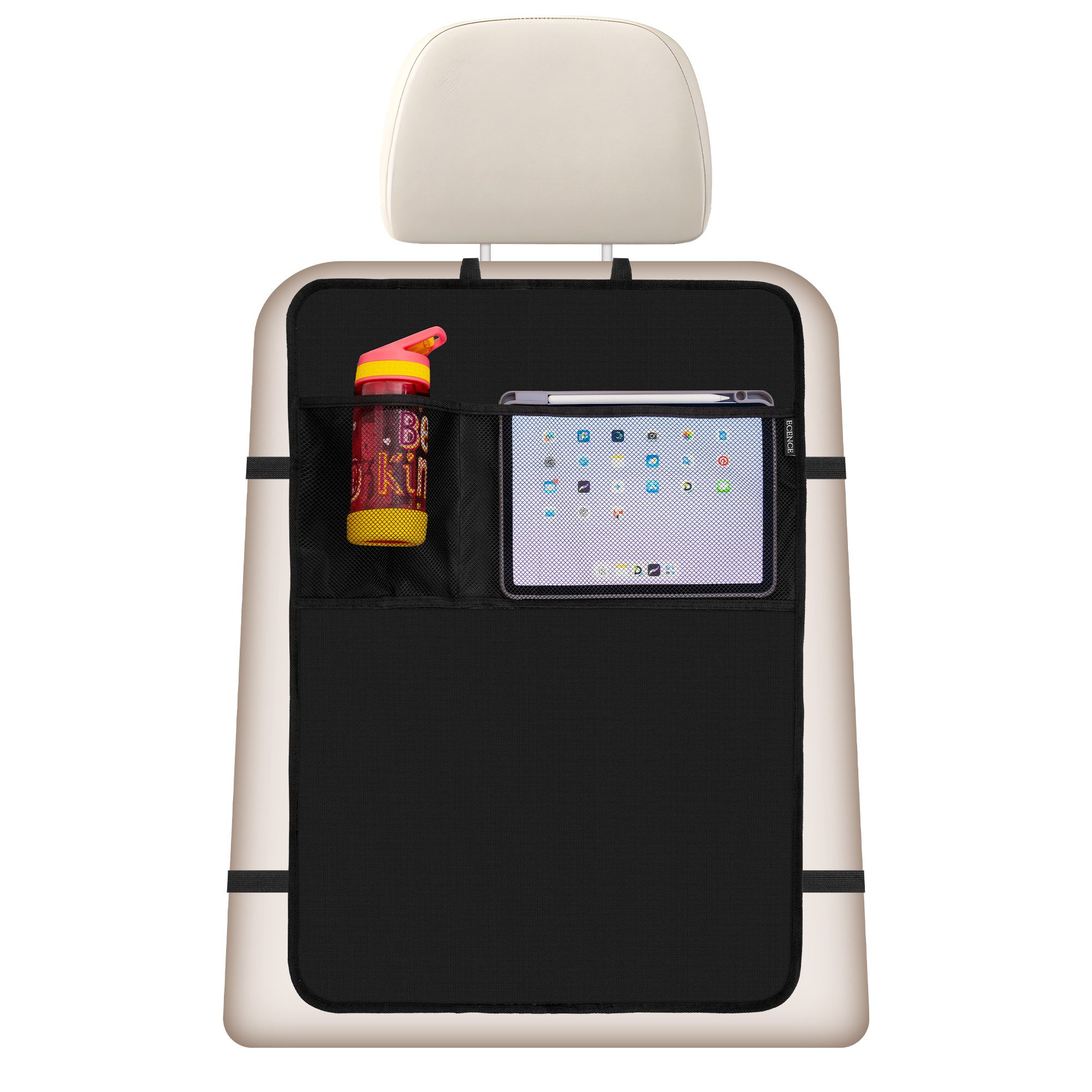 ECENCE 1x Rückenlehnen-Schutz Kinder, Rücksitzschoner 50 x 70cm, Organizer-Matte wasserdicht, Autotasche, Kick-Matte, Rückenlehnen-Tasche für Autositze mit Aufbewahrungssystem und Netztasche
