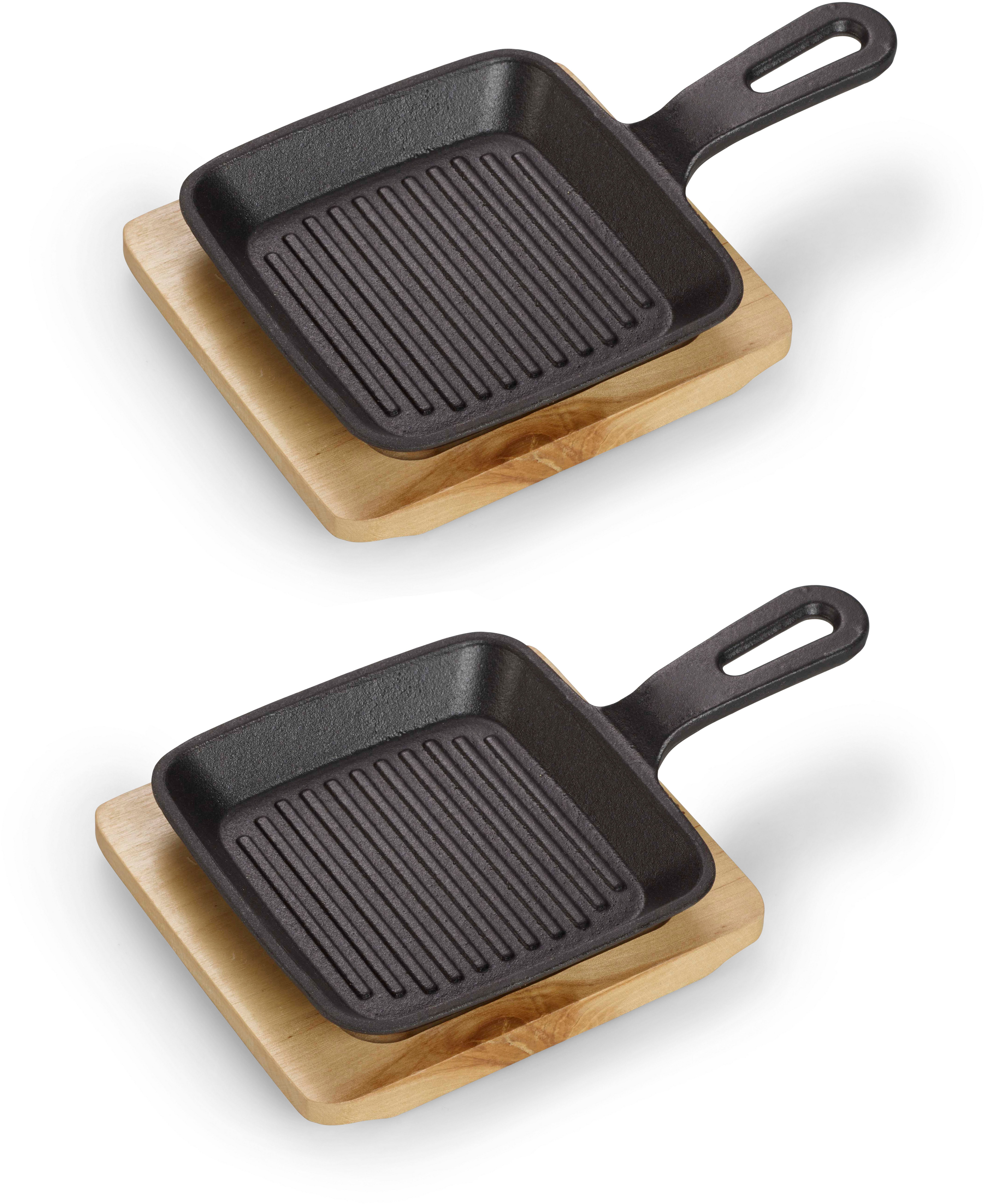 Warnhinweise | Holzbrett nicht mit heißem Pfännchen unbeaufsichtigt lassen – Brandgefahr. Nicht für die Mikrowelle geeignet. Nicht leer erhitzen – Gefahr von Überhitzung oder Rissbildung. Nicht spülmaschinengeeignet – nur handreinigen, ohne Spülmittel. Pfännchen wird sehr heiß – nur mit Hitzeschutz anfassen! |