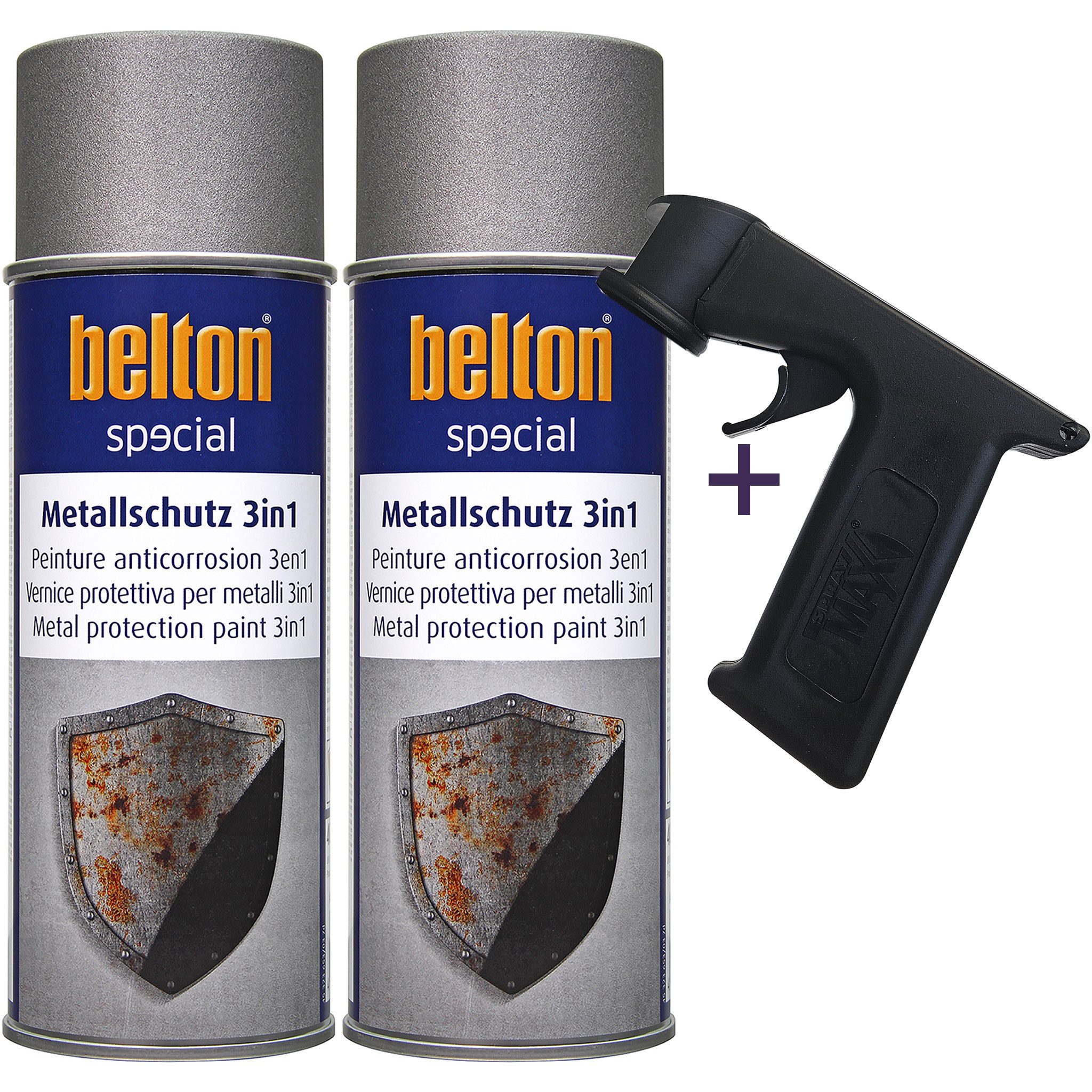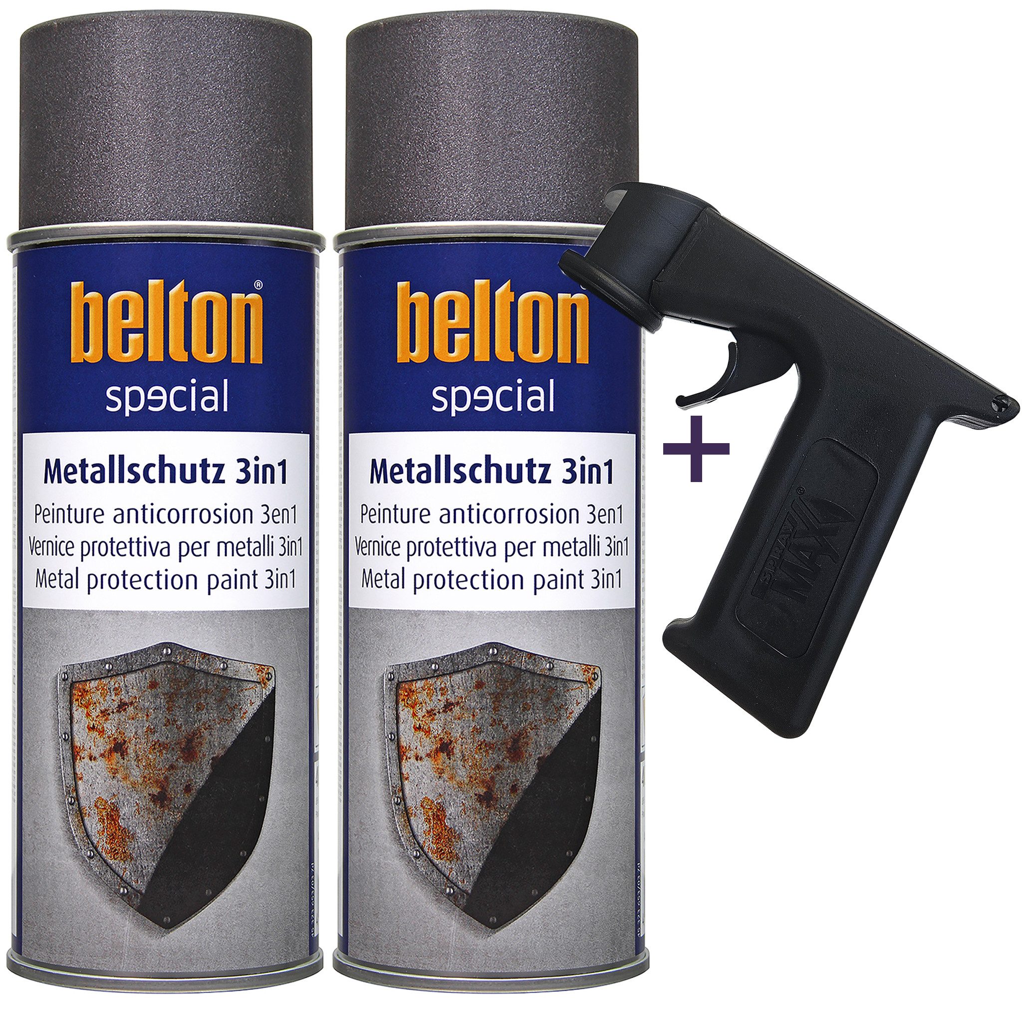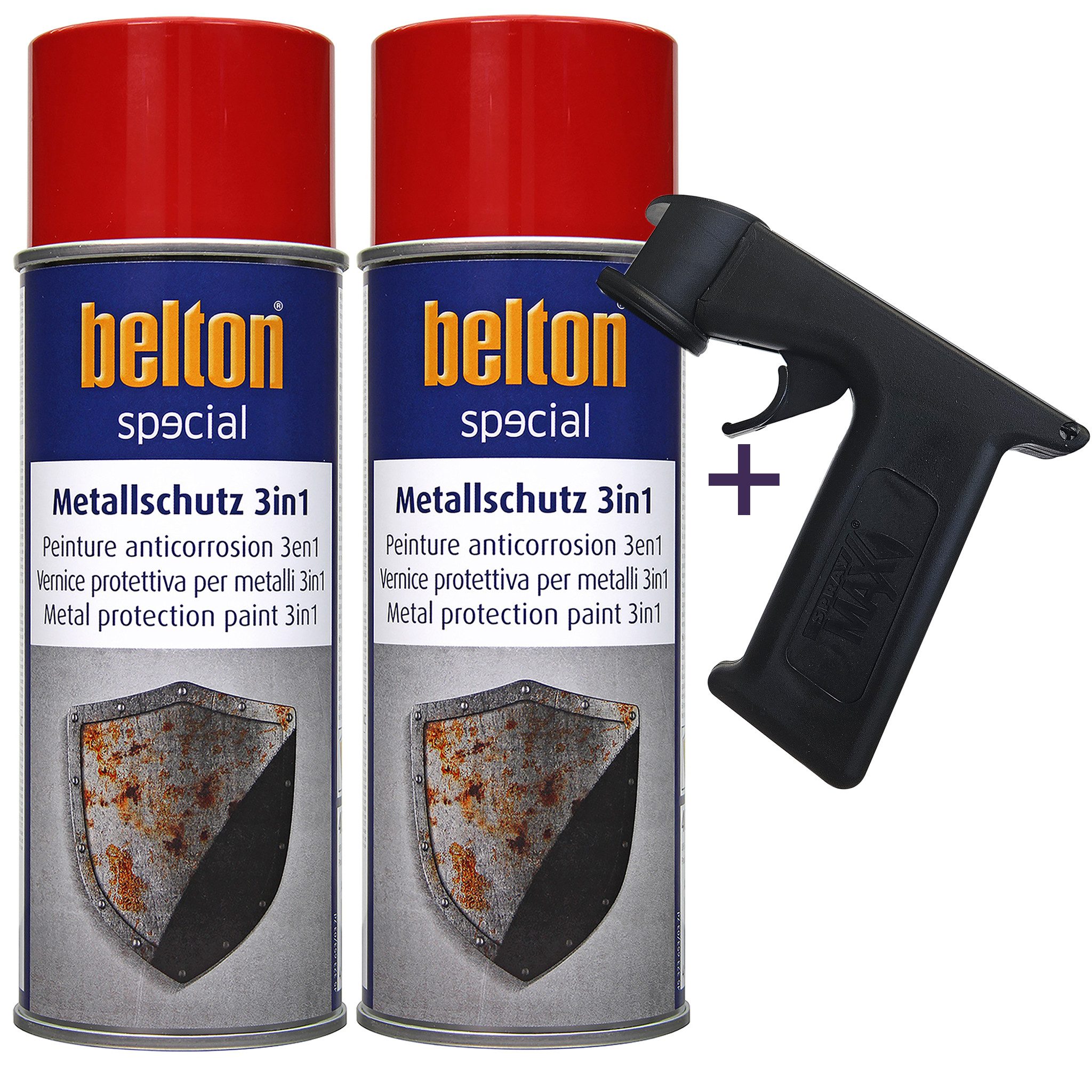 Der Belton-Metallschutzlack 3in1 ist ein hochwertiger Lack, der speziell entwickelt wurde, um Metalloberflächen vor Korrosion und anderen schädlichen Einflüssen zu schützen. Mit einer Füllmenge von 400 ml ist er ideal für verschiedene Anwendungen geeignet. Geliefert werden 2 Flaschen à 400 ml inclusive einem Lackdosenhandgriff für das einfache und gewohnte Handling beim Lackieren mit Belton, SprayMax oder anderen Lackspraydosenprodukten. Der Handgriff ermöglicht das Lackieren von schwer zugänglichen Lackierstellen, wie beispielsweise die Innenkanten im Türeinstiegsbereich.