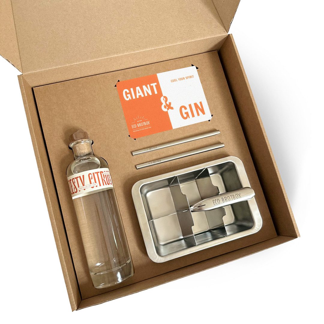 Set-Bestandteile | 1x ECO Ice Cuber Giant, 2x ECO Trinkhalme (kurz), 350 ml Zesty Citrus Distilled Dry Gin, Rezeptkarte für einen köstlichen Cocktail |