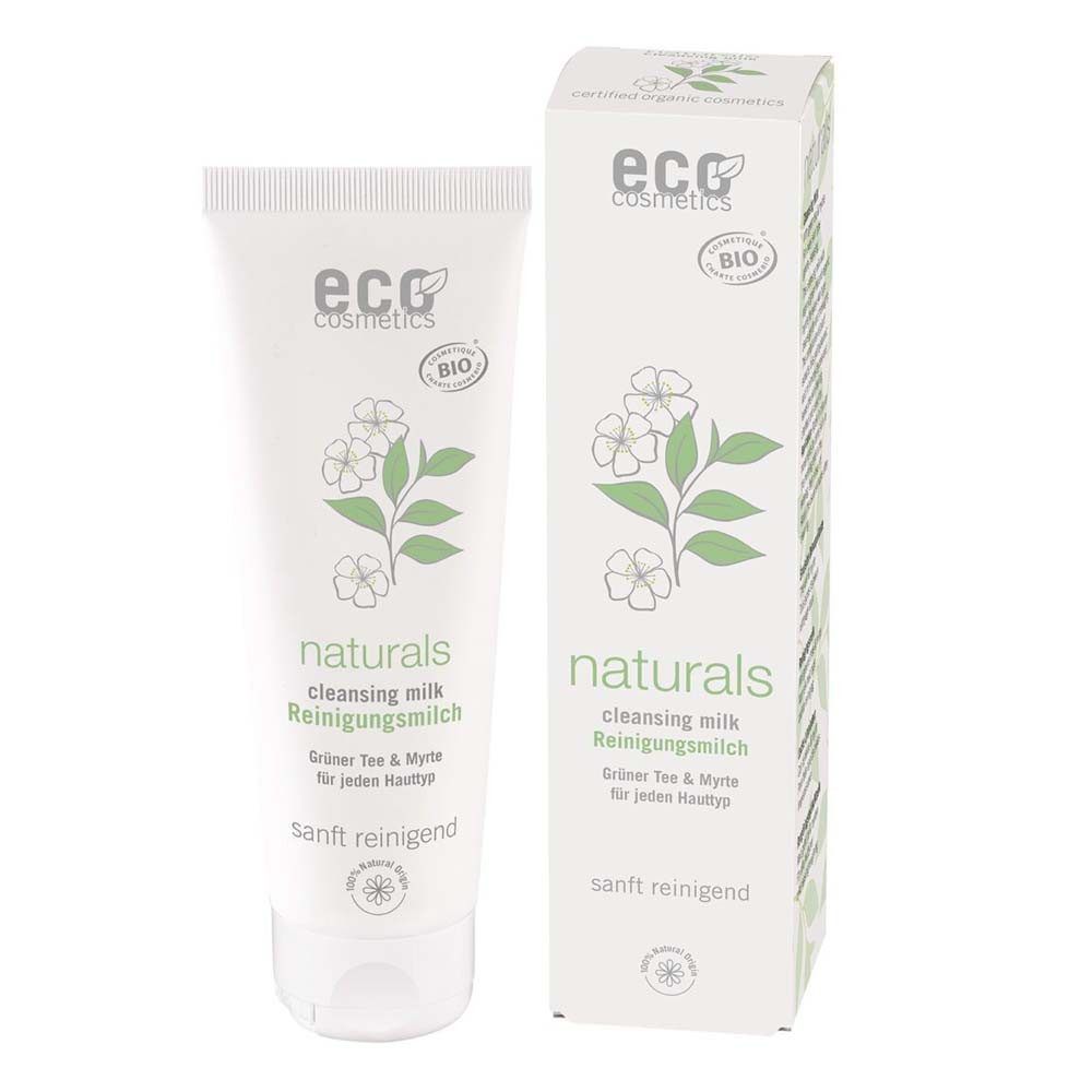 Für eine effektive Reingung: die ECO Reinigungsmilch. Pflanzliche Öle und Tenside aus nachwachsenden Rohstoffen reinigen sanft die Haut. Die milde Emulsion ist für jeden Hauttyp geeignet. Auch Make-up und UV-Filter werden schonend entfernt. Extrakte aus Bio Grüntee und Bio Myrtenblatt kräftigen die Haut, sind adstringierend und reduzieren Irritationen. Bio Traubenkernöl, Bio Olivenöl und Bio Jojobaöl mindern Spannungsgefühle und Feuchtigkeitsverlust. Pflanzliches Gylcerin und Hyaluronsäure lassen die Haut glatter erscheinen. Die natürliche Elastizität der Haut wird bewahrt. Eine natürliche Duftkomposition verleiht einen dezent-frischen Duft. Besonders empfohlen für normale und trockene Haut.