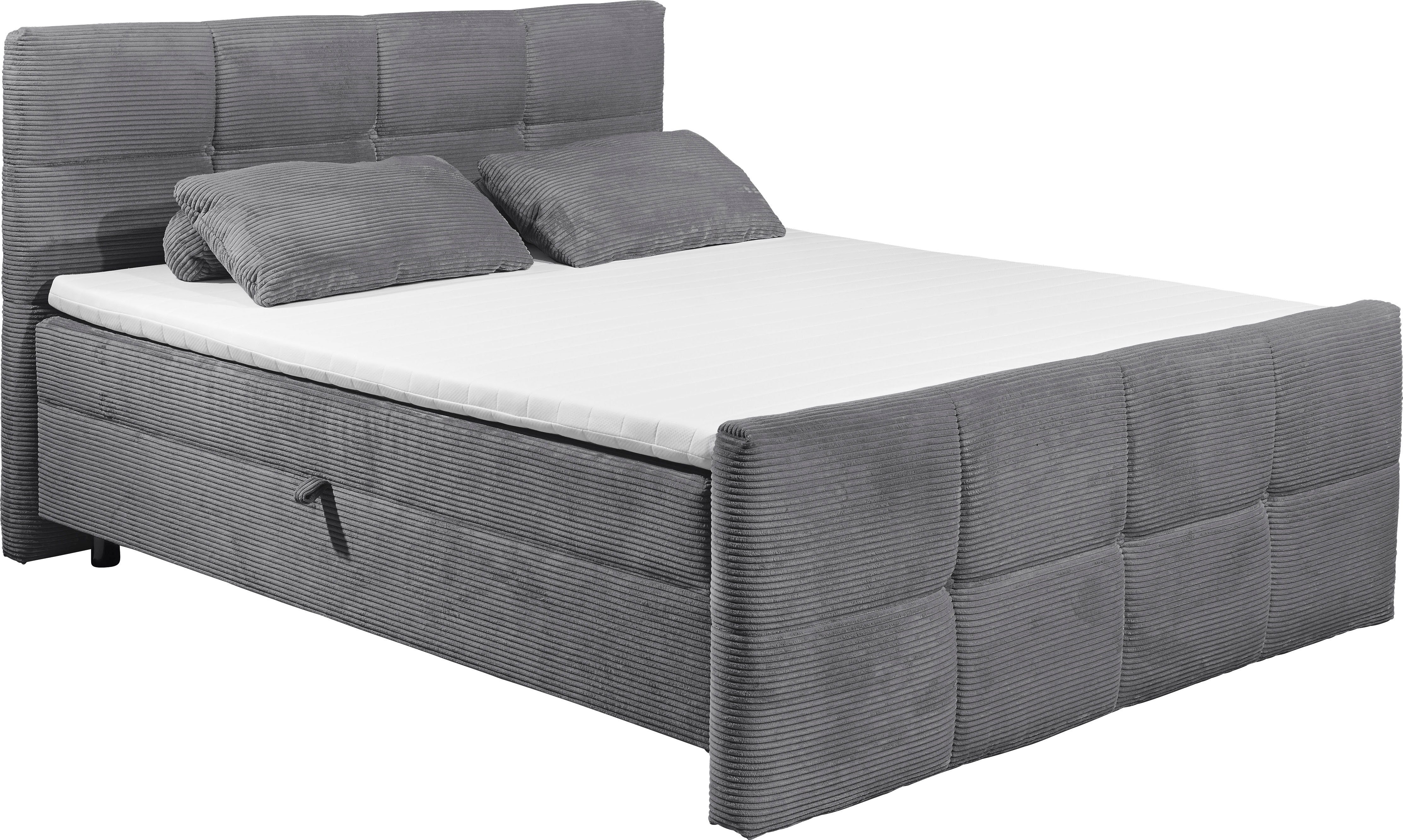 Um ein echtes Platzwunder handelt es sich bei diesem Boxbett »Tijuana« von ED EXCITING DESIGN, das mit praktischen Bettkästen versehen ist. Bei etwa 120 Kilogramm liegt die maximale Belastbarkeit. Auf der Matratze befindet sich ein Kaltschaum-Topper mit einer Höhe von 6 cm. Er dient als kuschelige Auflage und schützt gleichzeitig die darunterliegende Matratze. Das Kopfteil ist 112 cm hoch. Über das richtige Equipment für die Montage brauchst du dir keine Gedanken machen, denn das Montagematerial wird dir mitgeliefert.