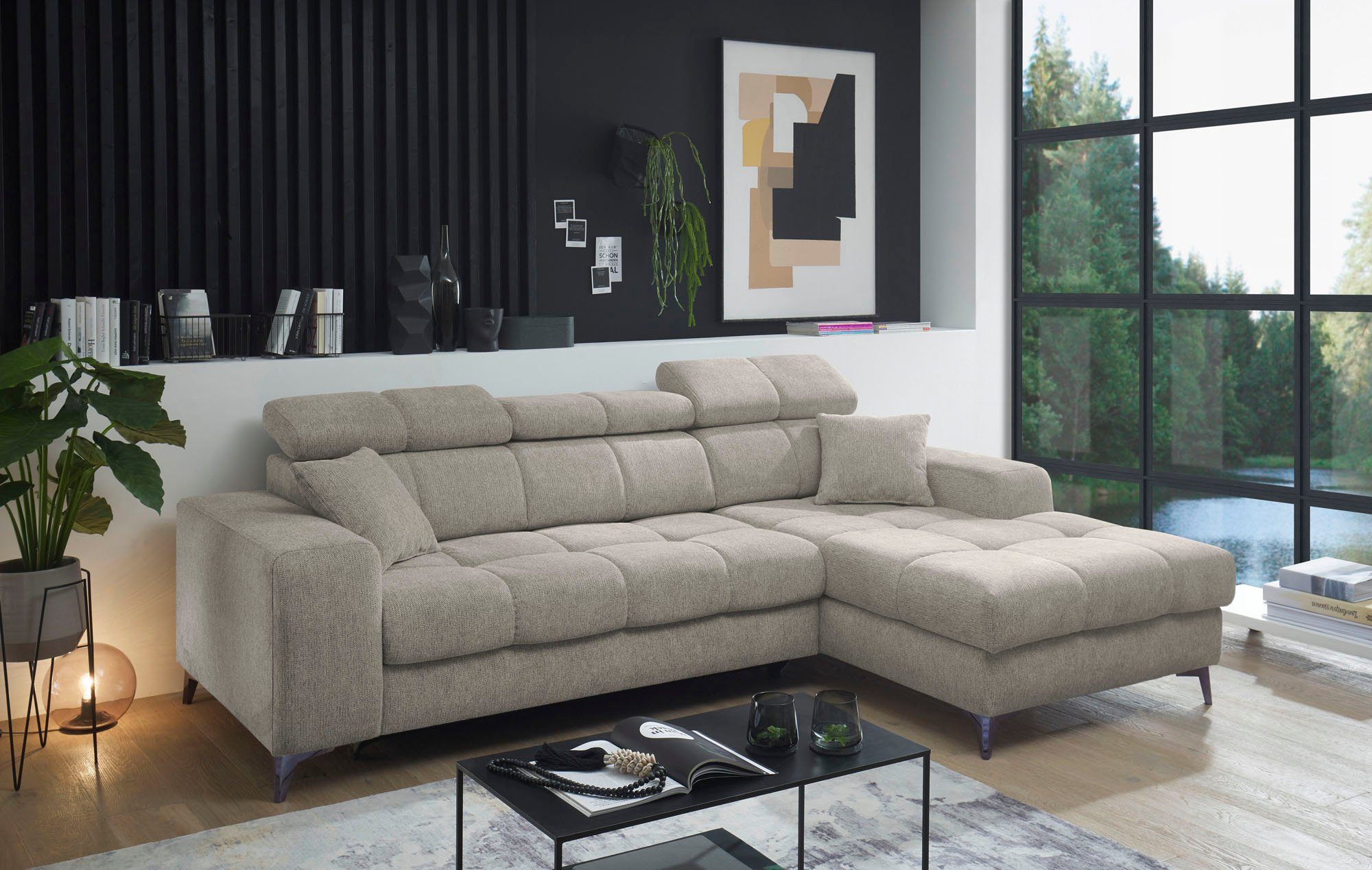 Durch die hochwertige Wellenunterfederung wird die Sitzfläche des Ecksofas »Sydney L-Form« von ED EXCITING DESIGN gut gefedert und bleibt dauerhaft elastisch. Darüber hinaus kann das Möbelstück ein separates Gästebett ersetzen und somit Platz einsparen, denn es ist mit einem praktischen Bettkasten versehen. Das Produkt ist manuell verstellbar. So kannst du mit ein paar Handgriffen deine bevorzugte Position einstellen. Von vorne betrachtet ist die Recamiere nach rechts ausgerichtet. Der Bezug aus Webstoff besitzt keine abstehenden Fasern und sorgt für eine glatte und ebenmäßige Oberfläche.