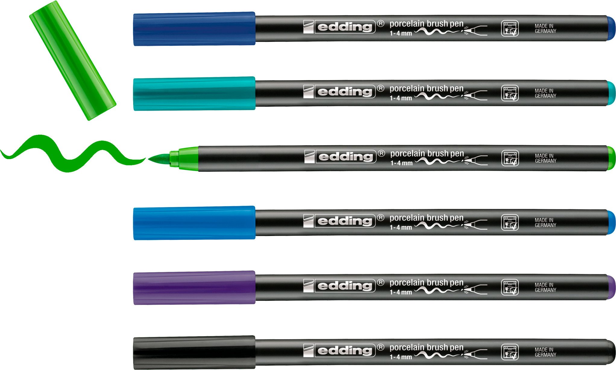 Du möchtest dein Porzellan ganz individuell gestalten? Mit dem edding 4200 Porcelain brushpen in 'coolen' Farbtönen ist das jetzt ganz einfach. Der Porzellan-Pinselstift von edding ist ideal zum Bemalen und Dekorieren von Kaffeebechern, Figuren oder Eierbechern. Der cremige Farbauftrag sorgt für ein gleichmäßiges, brillantes Farbergebnis ohne Verlaufen, das nach einer kurzen Trocknungszeit im Ofen eingebrannt wird und anschließend spülmaschinenfest bis 50 °C ist. Der edding 4200 Porcelain brushpen ist auch auf glasiertem Keramik und ofenfestem Glas anwendbar. Reinige die Objekte vor dem Bemalen gründlich und lasse die Bemalung 15 Minuten trocknen, bevor du sie bei 160°C im vorgeheizten Ofen 25 Minuten einbrennst und im Ofen abkühlst. Der edding 4200 Porcelain brushpen ist ein 6er-Set und licht- sowie wischfest und geruchsneutral.