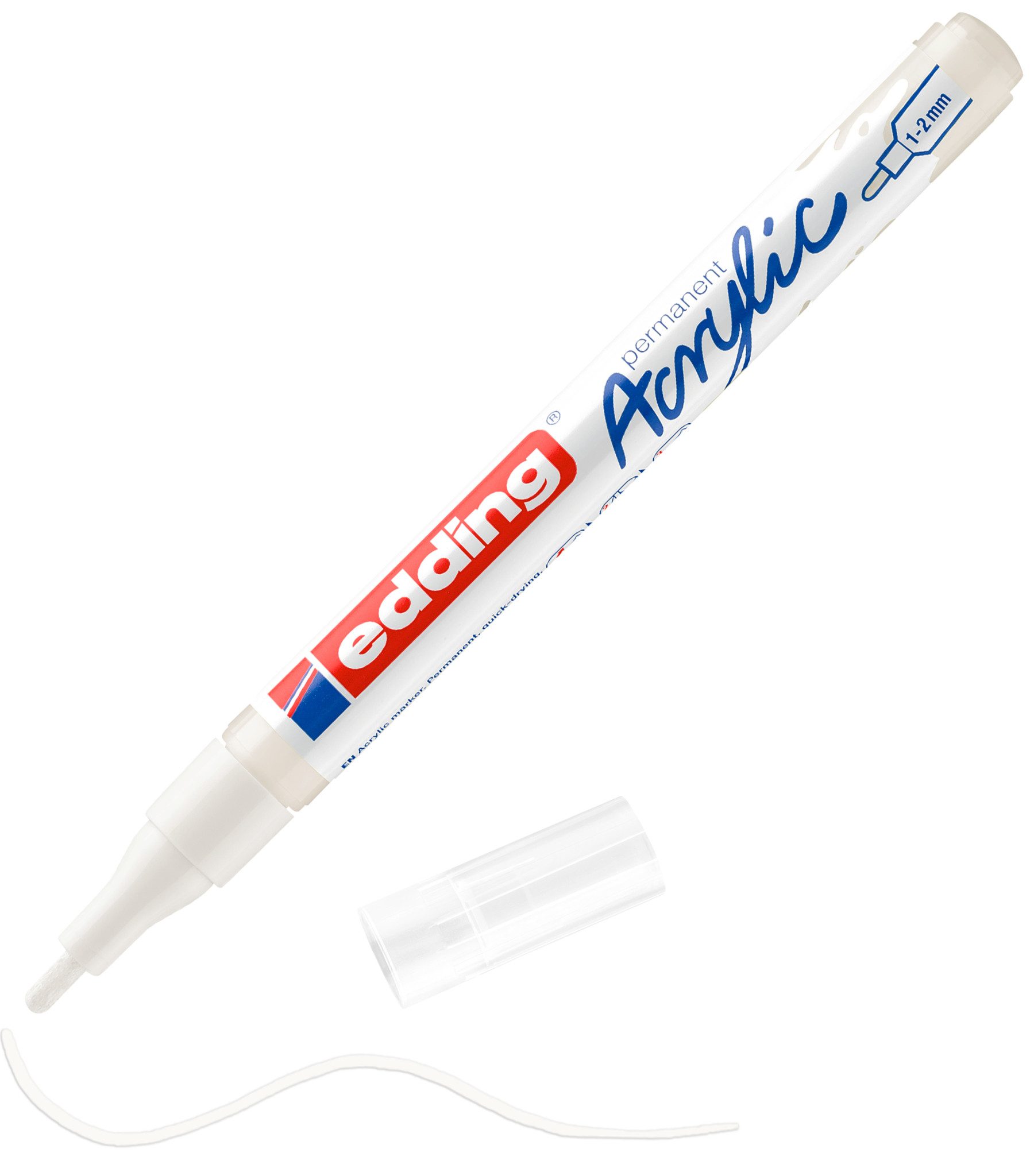 edding 5300 'Acrylmarker - Fein', Strichbreite ca. 1-2 mm mit einer formstabilen Rundspitze. Die beste Wahl für filigrane Striche, feine Ausarbeitungen und präzise Details. Ideal zur Anwendung auf Papier und Leinwänden. Der Stift überzeugt durch beste Malergebnisse, brillante Farben und hohe Deckkraft. Er ist geruchsarm, wasserfest, schnelltrocknend und lichtecht. Die handliche Form ermöglicht einen gleichmäßigen Farbauftrag und vielseitige Gestaltungen. Genießen Sie eine kreative Auszeit und gestalten Sie Keilrahmen und Glückwunschkarten mit diesen ausgewogenen Farben und Trendfarben.