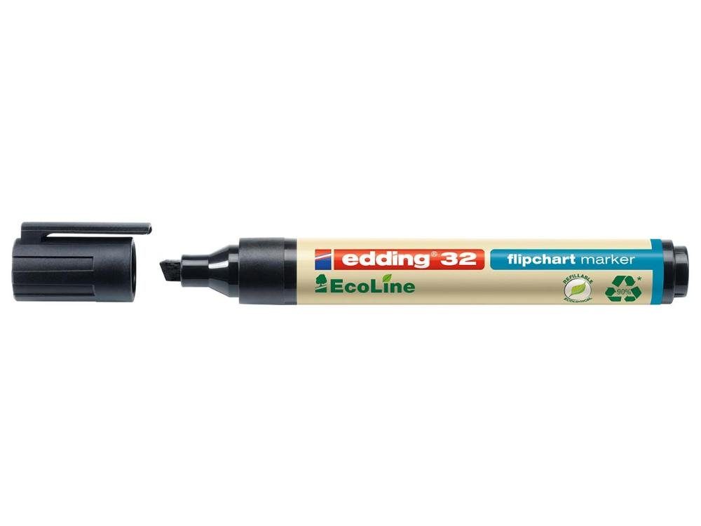Flipchartmarker speziell entwickelt zum Schreiben und Markieren auf Flipchartpapier, Moderationspapier und -karten sowie anderen Papierbögen. Die Kunststoffteile des Markers bestehen insgesamt mindestens zu 90% aus recyceltem Material (83% post-consumer). ClimatePartner zertifiziertes Produkt. Informationen zur Kompensation der Treibhausgasemissionen finden Sie hier: www.climate-id.com/9STSYG. Die Keilspitze verfügt über eine Strichbreite von 1-5 mm. Die geruchsneutrale Tinte in brillanten Farben schlägt nicht auf die nachfolgenden Seiten durch. Dank der Cap-off-Technologie kann das Produkt bis zu einigen Wochen offen liegen bleiben, ohne auszutrocknen (Prüfklima nach ISO 554). Das Produkt ist nachfüllbar mit edding FTK 25 Nachfülltinte. Passende Ersatzspitzen (edding 32/383 Ersatzspitzen) sind erhältlich.