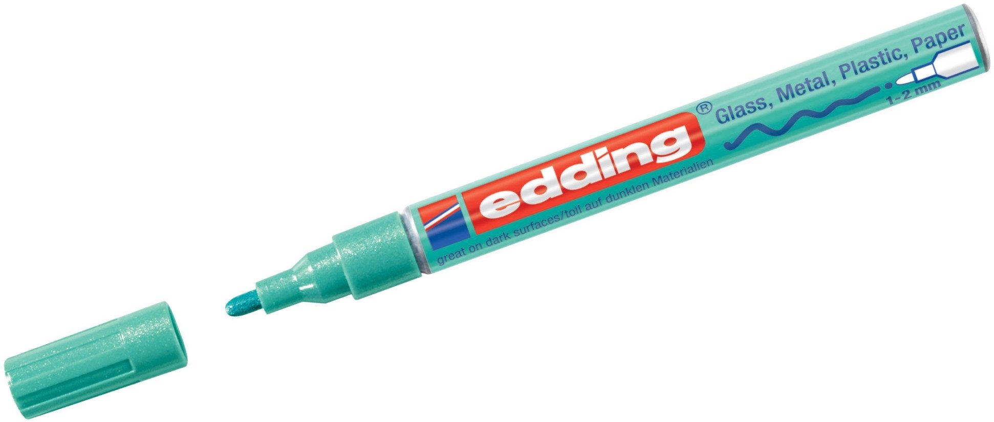Folienversiegelung. Laufbeschriftung enthält Piktogramme zur Anwendungserklärung für das Aktivieren der Lackmarker. Extrem Lichtbeständig. Stark deckend auch auf dunklen Oberflächen. Haftet auf glatten und porösen Oberflächen.