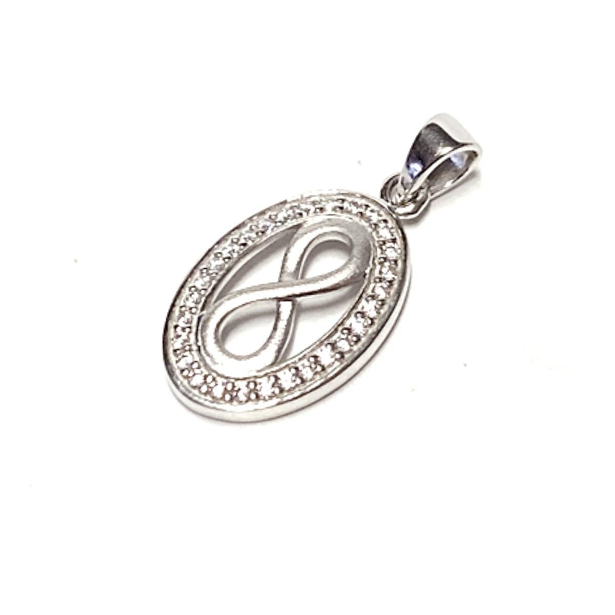 Dieser schlichte Kettenanhänger ist aus 925/- Sterling Silber gefertigt und wurde abschließend, als Anlaufschutz, rhodiniert. Dargestellt wird eine Unendlichkeitsacht, die Symbol für Freundschaft oder Liebe ist. Umrandet wird das Symbol mit einem ovalen Ring aus gefassten Zirkonias.