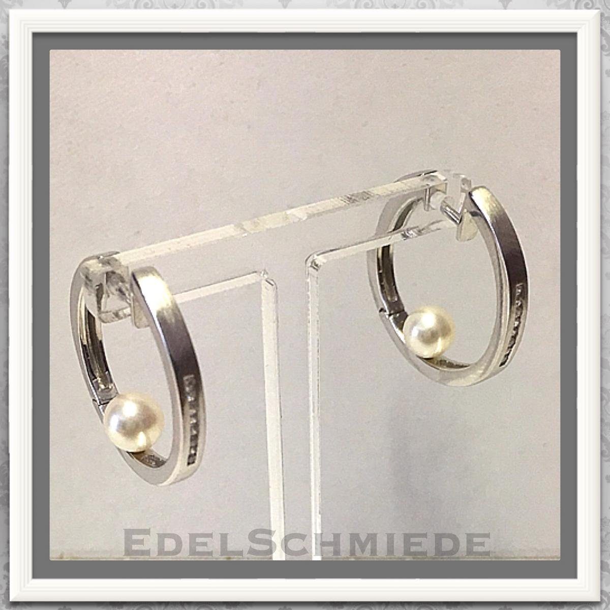 Edelschmiede925 Paar Creolen matt 925 Silber rhodiniert echte Perle Zirkonia Scharniercreole