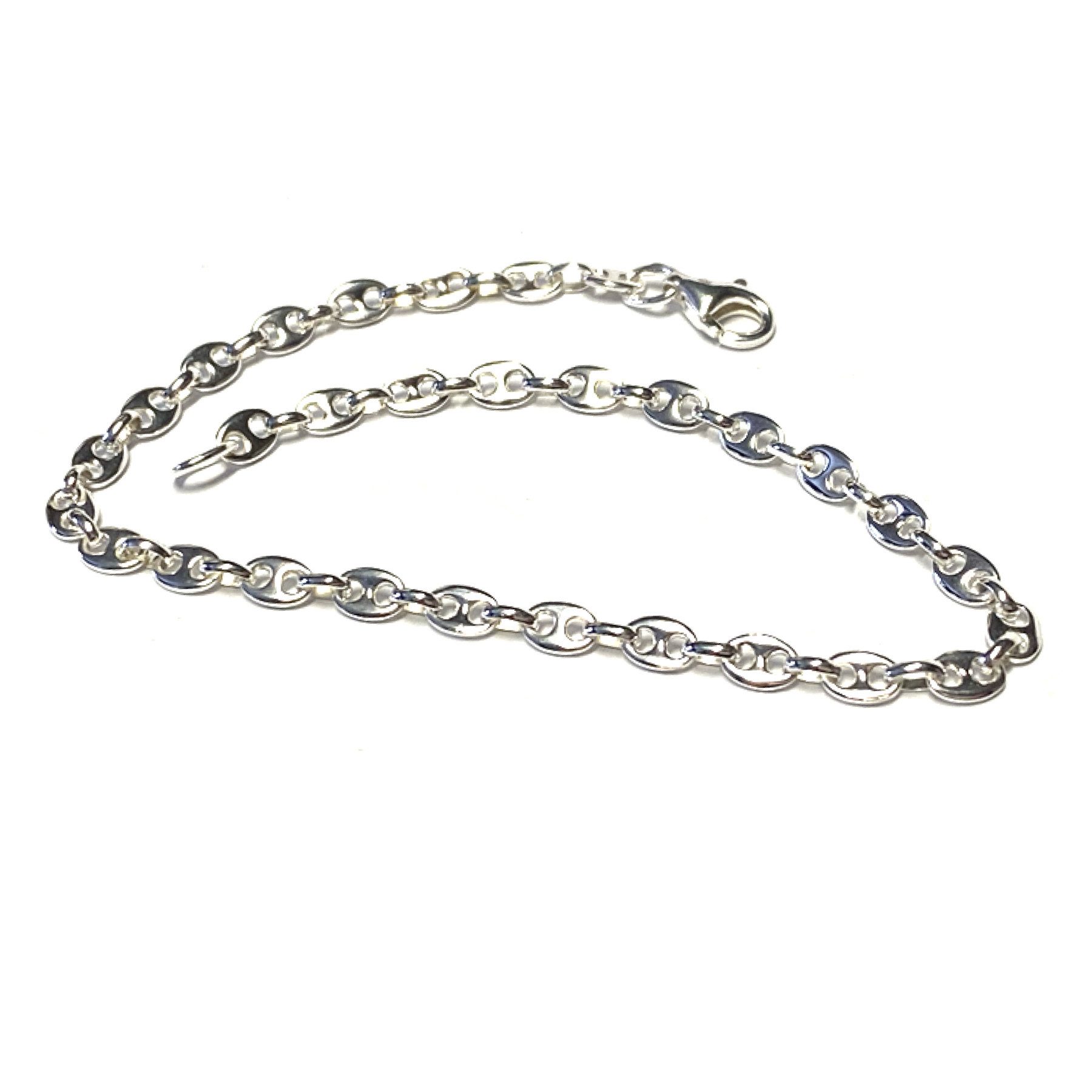Dieses tolle Armband ist aus 925/- Sterling Silber gefertigt und wurde abschließend in seiner Oberfläche komplett poliert. Die Elemente sind alle miteinander beweglich verbunden, was das Tragen sehr angenehm macht. Verschlossen wird das Armkettchen mit einem stabilen Karabiner und einer Gegenöse.