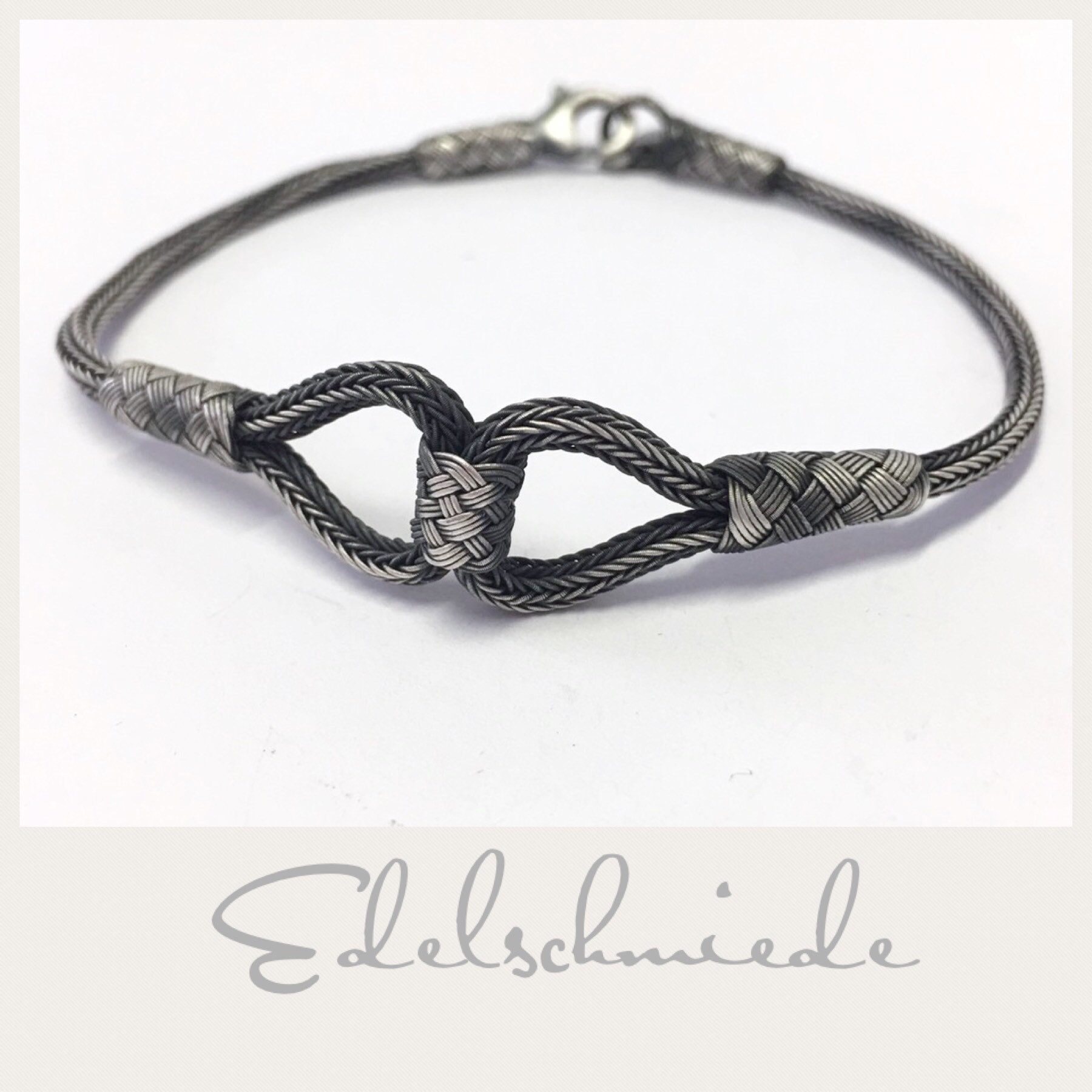 Dieses herrliche Armband ist aus 925/- Sterling Silber gefertigt und wurde abschließend geschwärzt, um einen rustikalen Look zu erreichen. Mehrere Stränge sind hier zu einem Armband verschlungen. Verschlossen wird das Armband mit einem stabilen Karabiner.