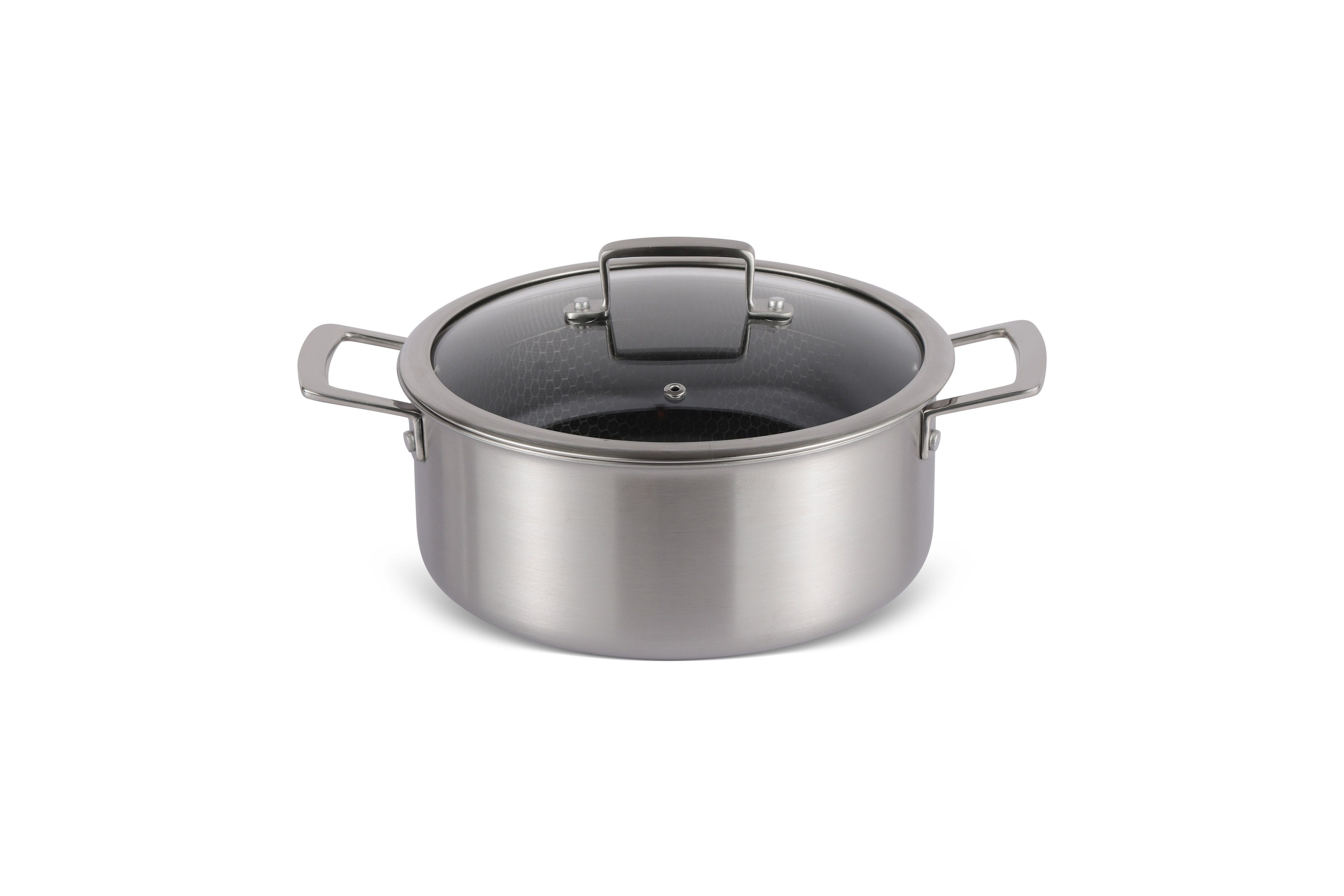 Die Töpfe sind in zwei Größen erhältlich - 3,5 l und 4,3 l - und repräsentieren höchste Qualität und bieten eine hervorragende Funktionalität in eleganter Ausführung. Hergestellt aus dreischichtigem Edelstahlmaterial zeichnen sich diese Töpfe durch ihre Langlebigkeit und außergewöhnliche dreischichtige Konstruktion aus, was sie robust und äußerst effizient im täglichen Gebrauch macht. Ihre glatte und elegante äußere Beschichtung verleiht ihnen ein einzigartiges Aussehen, das sie perfekt in jede Küche integriert und Eleganz und Stil hinzufügt. Das Innere der Töpfe ist so gestaltet, dass es höchsten Kochstandards gerecht wird und optimale Bedingungen für die Zubereitung verschiedener Gerichte bietet. Die Verwendung hochwertiger Materialien und sorgfältige Verarbeitung machen diese Töpfe nicht nur elegant, sondern auch praktisch. Sie eignen sich perfekt zum Kochen von alltäglichen Gerichten und sorgen für eine gleichmäßige Wärmeverteilung sowie außergewöhnliche Langlebigkeit, was sie zu einem zuverlässigen Werkzeug in der Küche für viele Jahre macht.
