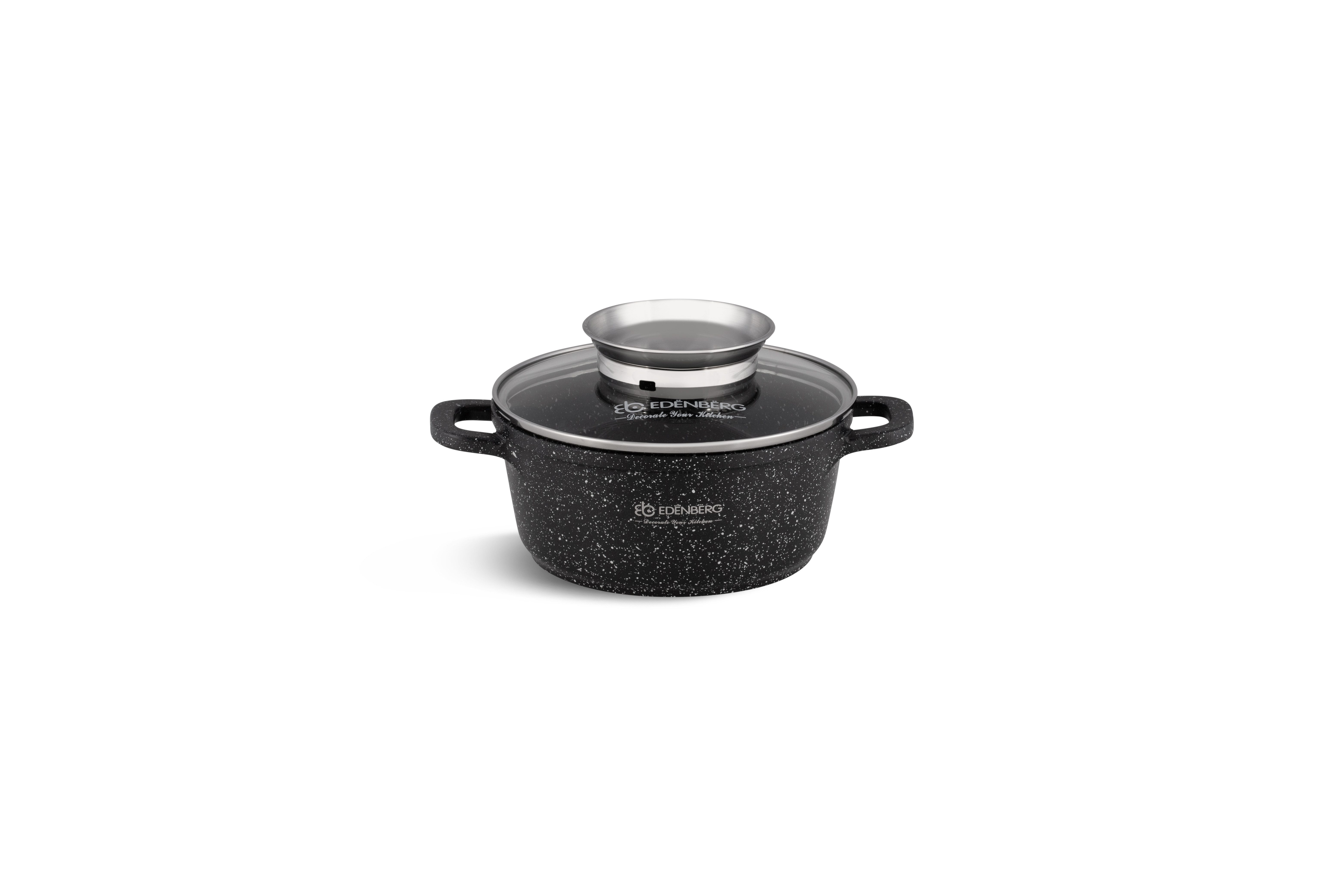 Unser Geheimnis liegt in der innovativen Technologie - die marmorierte Keramikbeschichtung, hergestellt mit fortschrittlicher Nanotechnologie, bildet eine antihaftende Schicht auf der Oberfläche des Topfes. Dadurch kannst du dich an exquisitem Geschmack von Gerichten erfreuen, ohne Angst vor Anhaften oder Reaktionen mit Lebensmitteln haben zu müssen. Die Vielseitigkeit unserer Töpfe macht sie zu einem unverzichtbaren Bestandteil jeder Küche. Egal, ob du auf einem Gasherd, Elektroherd, Glaskeramikkochfeld oder Induktionsherd kochst, unsere Töpfe werden deinen Erwartungen gerecht. Unser Glasdeckel mit Aroma-Knopf ist nicht nur eine praktische Lösung, sondern auch eine elegante Ergänzung für jede Küche. Zusätzlich mit einem Gewürzdosierer ausgestattet, ermöglicht er die Kontrolle über die Aromen deiner Gerichte. Die gleichmäßige Wärmeverteilung, die Öleinsparung, gesundes Kochen - all das bieten unsere Töpfe. Dank ihnen werden deine Gerichte immer perfekt zubereitet sein und du kannst den Geschmack deiner Lieblingsgerichte auf gesündere Weise genießen. Langlebigkeit und Beständigkeit sind weitere Vorteile unserer Töpfe. Geeignet für den täglichen Gebrauch, sind sie beständig gegen Abnutzung und hohe Temperaturen, was ihre langanhaltende Haltbarkeit und Zuverlässigkeit garantiert. Entdecke eine neue Dimension kulinarischer Erlebnisse mit unseren marmorierten Töpfen. Lass deine Küche mit Eleganz und Geschmack erstrahlen - wähle unsere Töpfe und koche mit Leidenschaft! Höchste Qualität der Speisen: Die marmorierte keramische Antihaftbeschichtung, die keine Reaktion mit Lebensmitteln eingeht, gewährleistet eine hervorragende Qualität der zubereiteten Gerichte. Innovative Technologie: Die Beschichtung, hergestellt mit Nanotechnologie, bildet eine dichte, kompakte und glatte Schicht auf der Oberfläche des Kochgeschirrs, was die Qualität der zubereiteten Speisen zusätzlich erhöht. Vielseitigkeit: Die Möglichkeit der Verwendung auf verschiedenen Arten von Herden, einschließlich Gas-, Elektro-, Keramik- und Induktionsherden, macht es zu einem praktischen Küchenwerkzeug für jedermann. Bequemer Deckel: Der gläserne Deckel mit Aroma-Knopf, zusätzlich ausgestattet mit einem Gewürzdosierer, erleichtert die Kontrolle über das kochende Gericht und das Hinzufügen von aromatischen Zutaten. Gleichmäßige Wärmeverteilung: Diese Töpfe verteilen die Hitze gleichmäßig und halten sie lange, was eine gleichmäßige Zubereitung der Speisen ermöglicht. Ölsparend: Die Möglichkeit des Kochens mit minimaler Ölmenge ermöglicht eine gesündere Zubereitung der Speisen und reduziert die Kalorien. Gesundes Kochen: Die Möglichkeit des Kochens und Backens von Speisen mit minimaler Menge an Fett oder Wasser trägt zu einem gesünderen Lebensstil und einer gesunden Ernährung bei. Langlebigkeit und Beständigkeit: Diese Töpfe sind resistent gegen Abnutzung und hohe Temperaturen, was ihre langfristige Haltbarkeit und Nutzung auch bei intensivem Gebrauch garantiert.