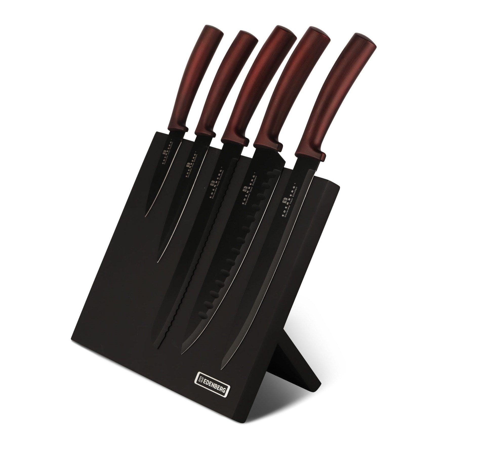 Das Set beinhaltet: Kochmesser, Brotmesser, 2x Universalmesser, Gemüsemesser, Messerhalter