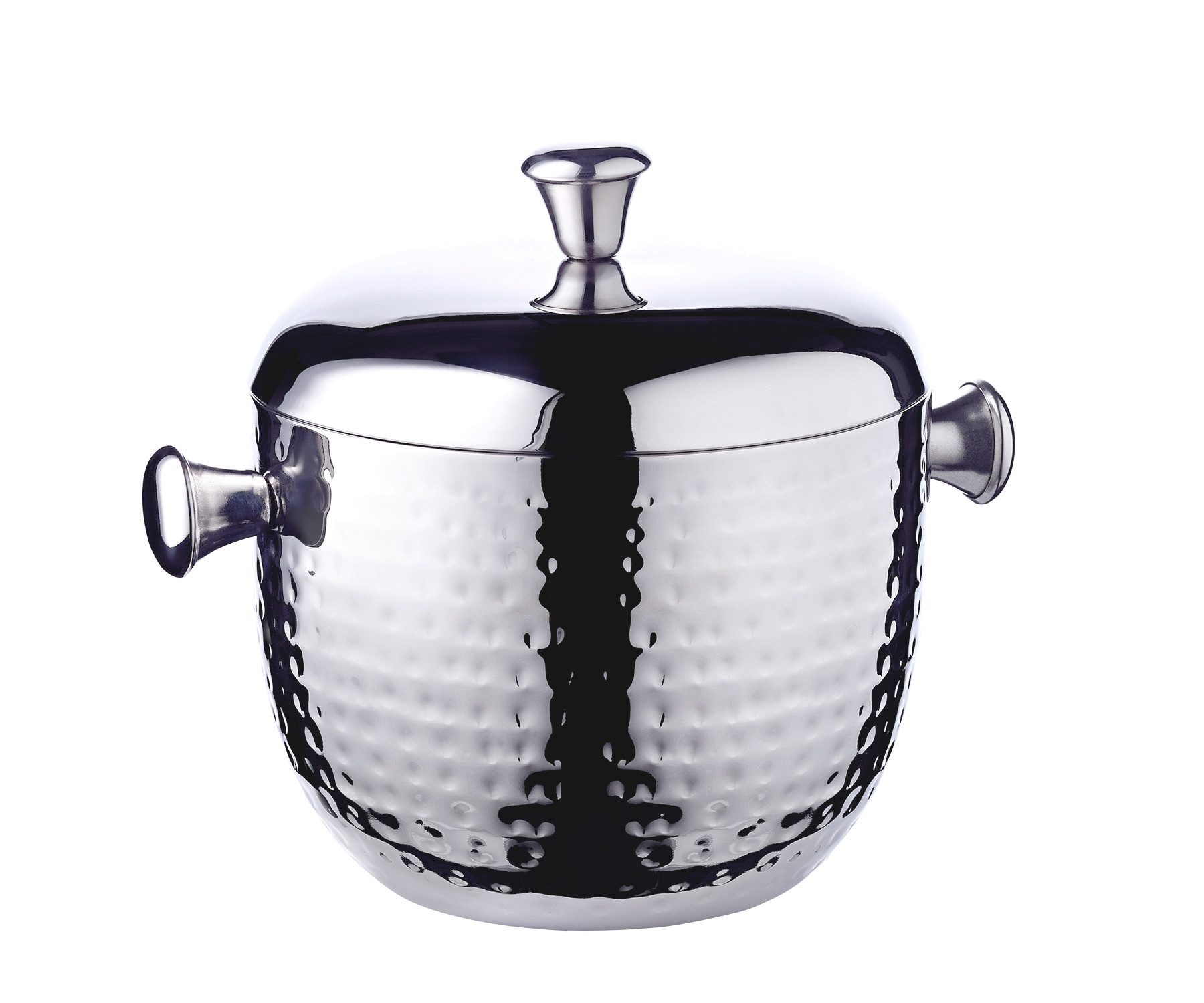 IHRE VORTEILE: Langanhaltend isolierender Eiswürfelbehälter elegante Spiegelglanz-Polierung handgearbeitete Hämmerung BPA frei Inklusive Eiszange und Deckel Rostfreier Eisbehälter kühlt bis zu 8 Stunden doppelwandiger Edelstahl speichert außergewöhnlich gut die Temperatur Thermobehälter