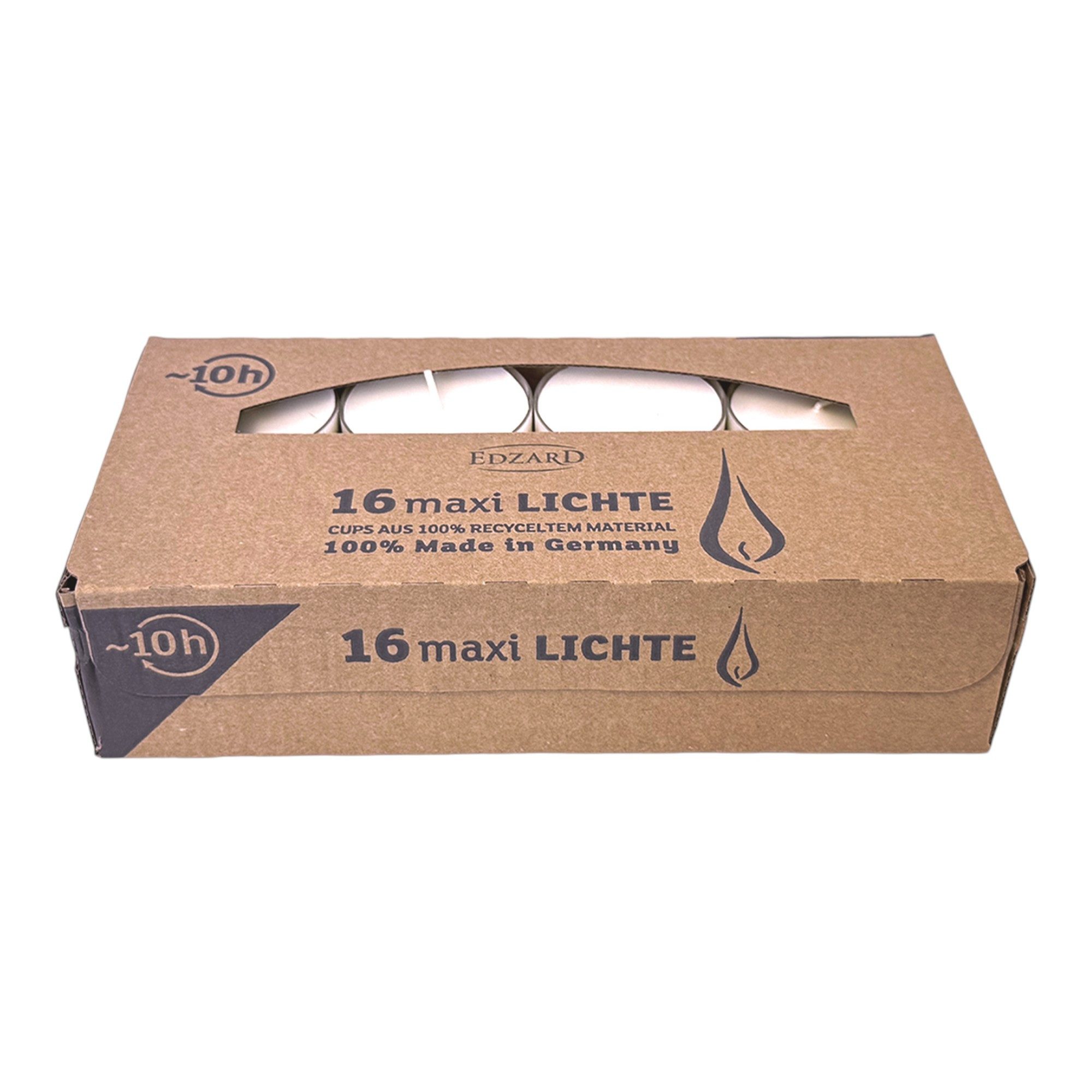 VORTEILE: Brenndauer ca. 10 Stunden Made in Germany 16 Stück Vorteilspreis Wachsfarbe weiß Transparente Hülle