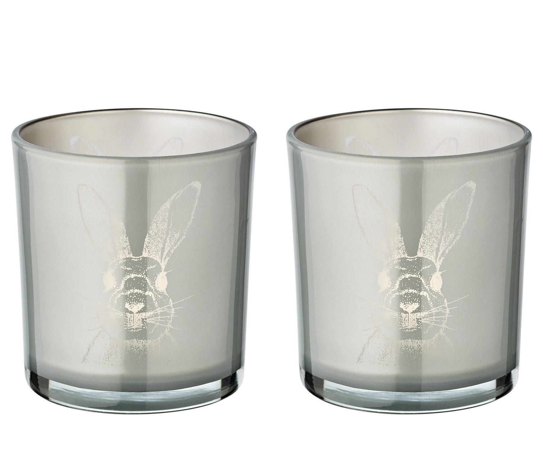 IHRE VORTEILE: Teelichtglas mit Hasen-Design im praktischen 2er-Set für Teelichter weitere Größen erhältlich 8 cm hoch Ø 7,5 cm Indoor Outdoor kombinierbar mit weiteren Teelichtgläsern
