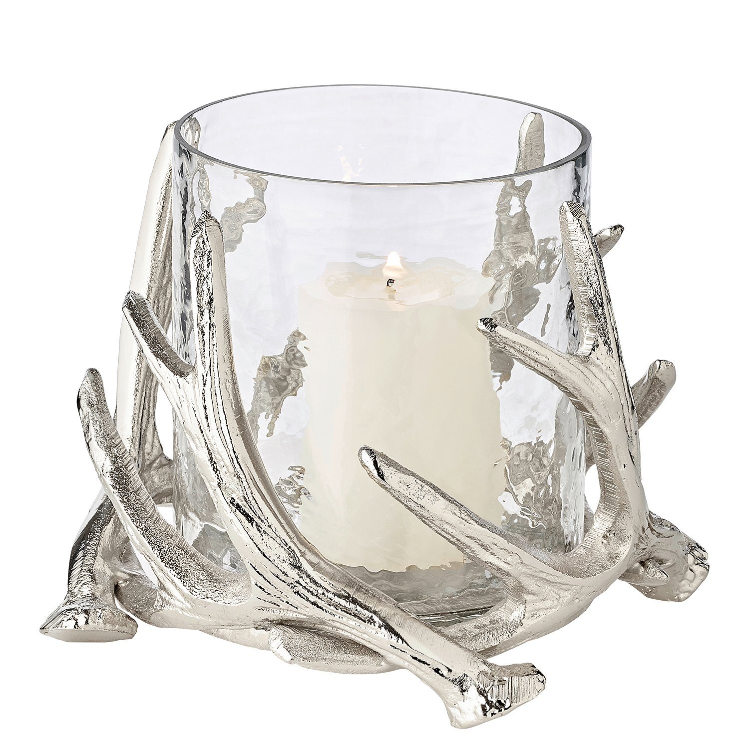 INNOVATIVES DESIGN: Durch das edle Design in Geweih-Optik schaffen Sie einen ganz besonderen Hingucker in Ihrer Wohnung oder auf der Veranda. Das Glas des Windlichts Kingston wird dabei stilvoll von den silbernen Geweihenden eines Hirsches umschlossen.
