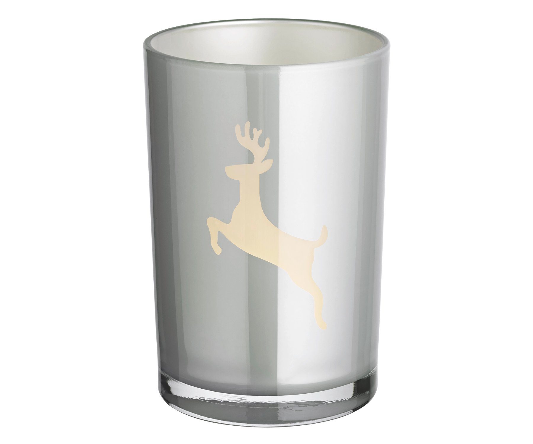 Teelichthalter gibt es in den unterschiedlichsten Formen und Farben - denn jeder möchte sie in seinem Interieur haben. Durch den Kerzenschein und dem gemütlichen Licht sorgen sie für eine extra Portion Gemütlichkeit in jedem zu Hause. Das Teelichtglas mit dem Rentier-Motiv ist aus Kristallglas und in einem Grau-Weiß-Ton geschaffen. Durch die edle Farbe und das Rentier-Motiv sorgt das Windlicht Loki für ganz besonderes Licht in jedem Raum. Mit einem Durchmesser von 12 cm können viele Kerzengrößen mit dem Windlicht kombiniert werden.