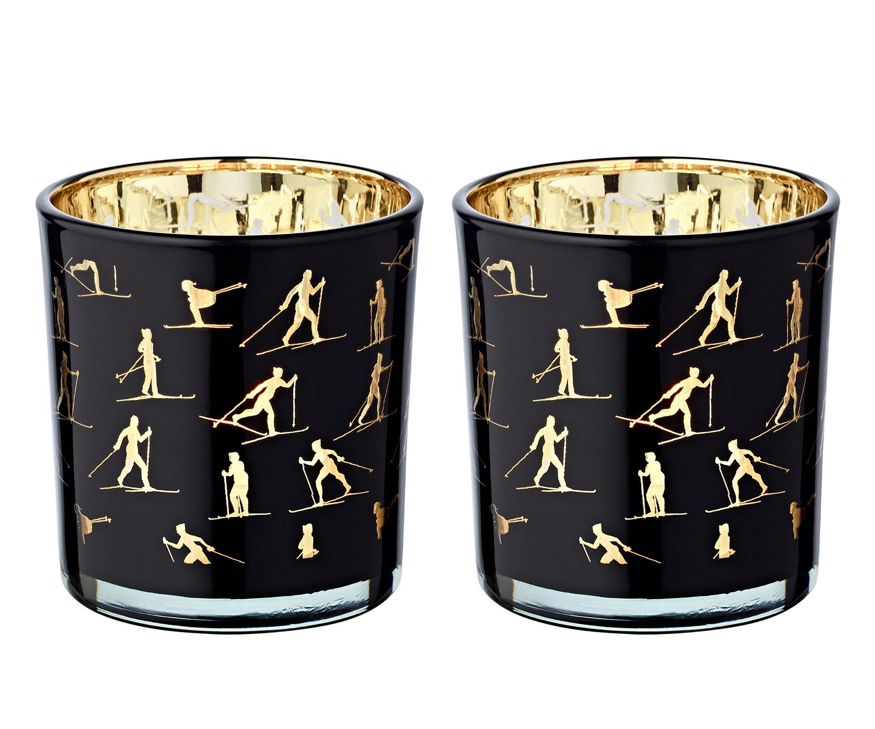 IHRE VORTEILE: Teelichtglas mit Skisport-Design im praktischen 2er-Set für Teelichter weitere Größen erhältlich 8 cm hoch Ø 7,5 cm Indoor Outdoor kombinierbar mit weiteren Teelichtgläsern