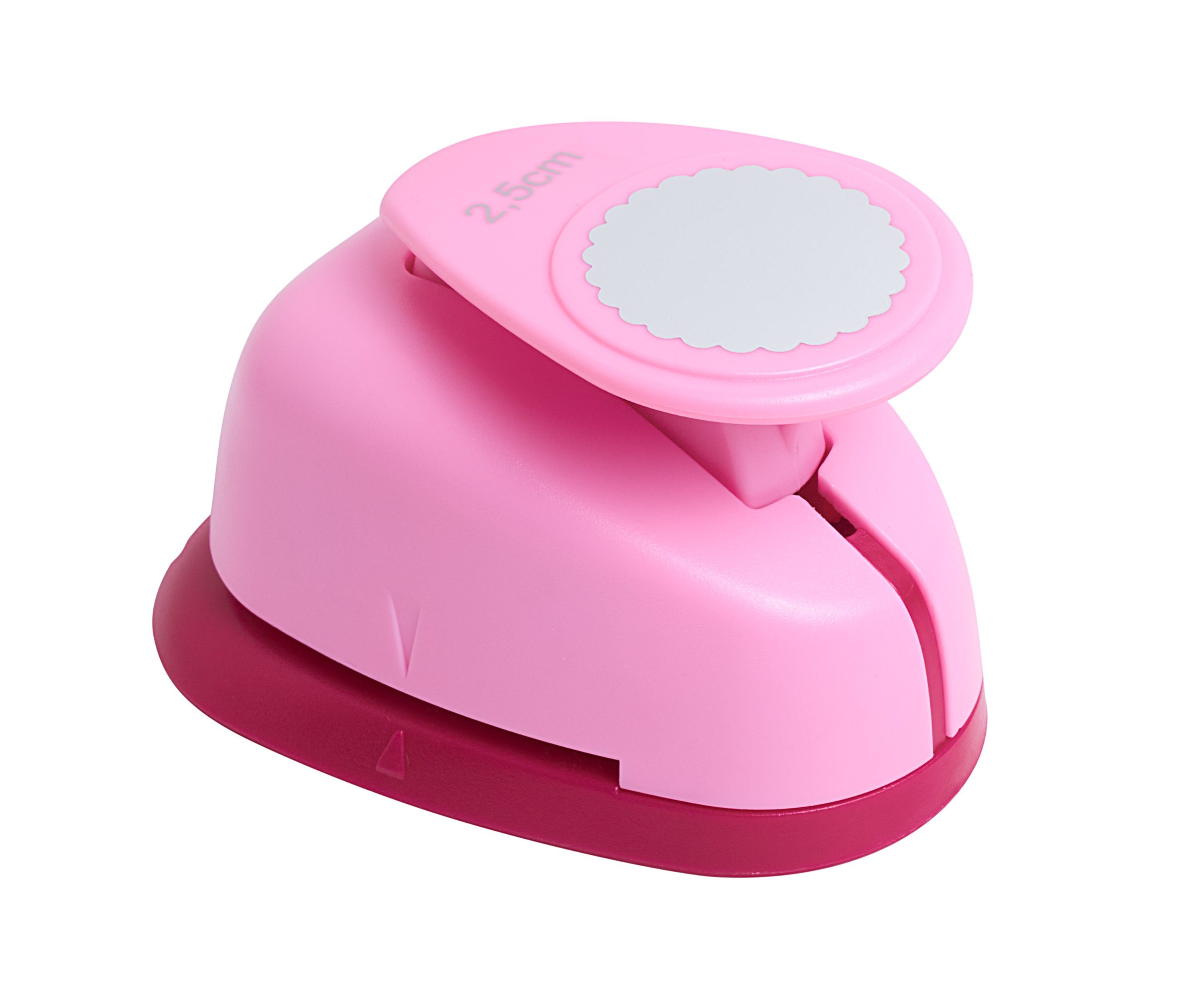 Handlicher Motivlocher mit Motiv 'gezahnter Kreis' mit einem Durchmesser von 2,5 cm.