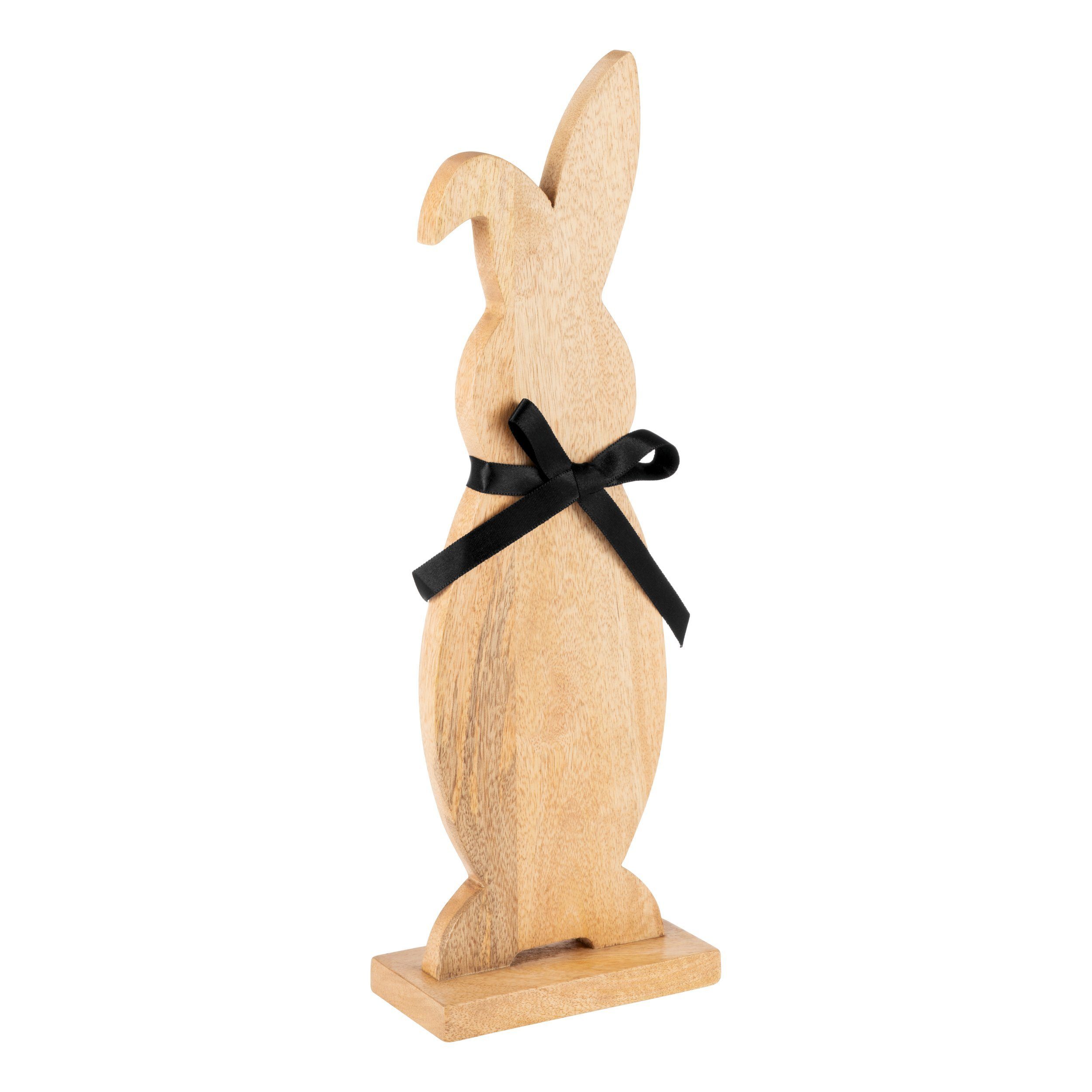 • Der Holzhase aus natürlichem Mangoholz mit schwarzer Schleife um den Hals verleiht deiner Osterdekoration eine rustikale und gleichzeitig verspielte Note